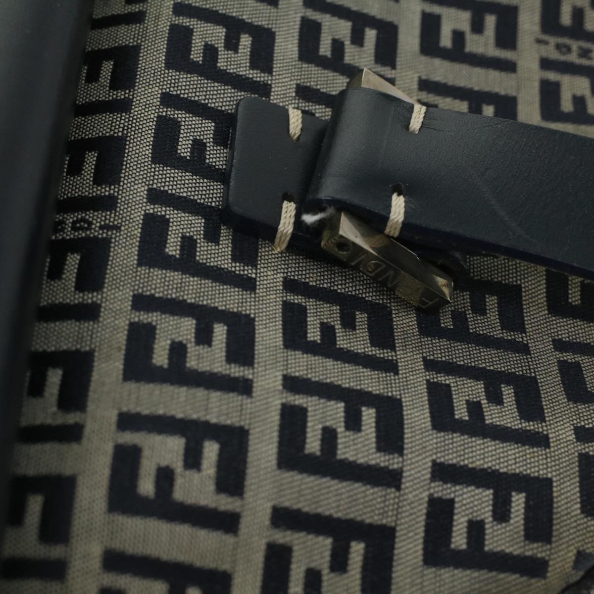FENDI Zucchino Canvas Hand Bag Navy 71-16533-0-012 Auth ac1835