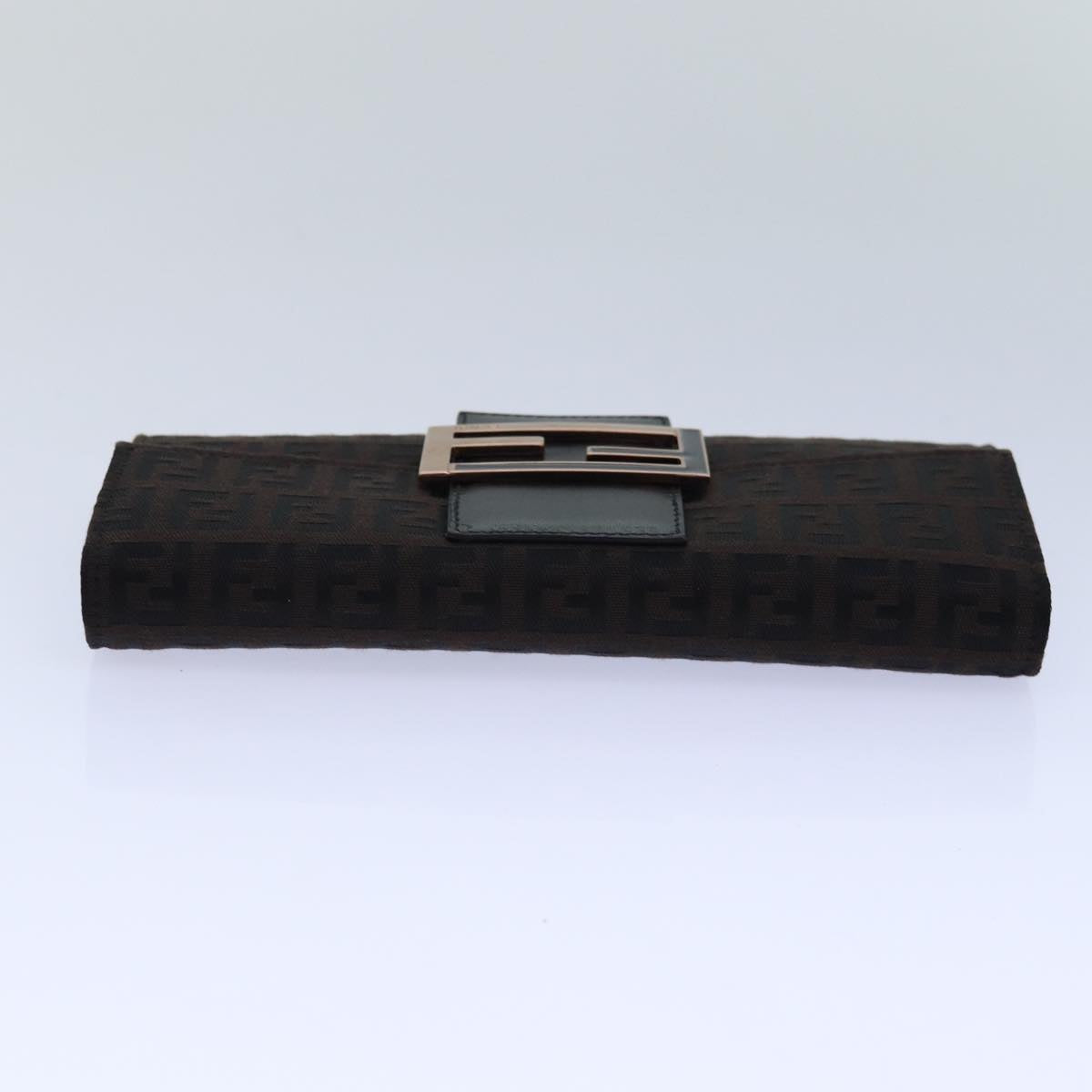 FENDI Zucchino Canvas Long Wallet Brown Auth am6703