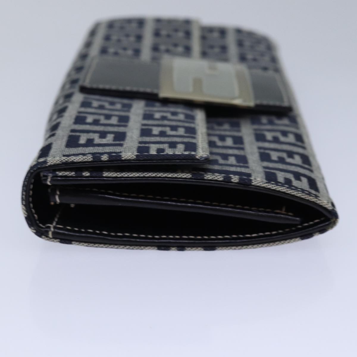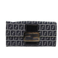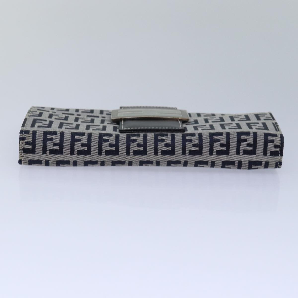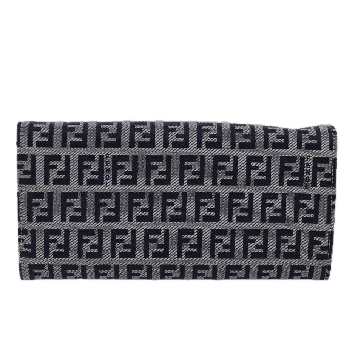 FENDI Zucchino Canvas Long Wallet Navy Auth yk13654