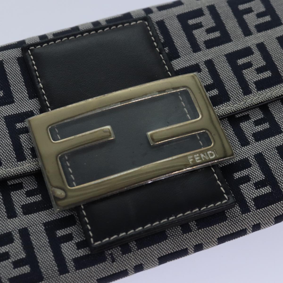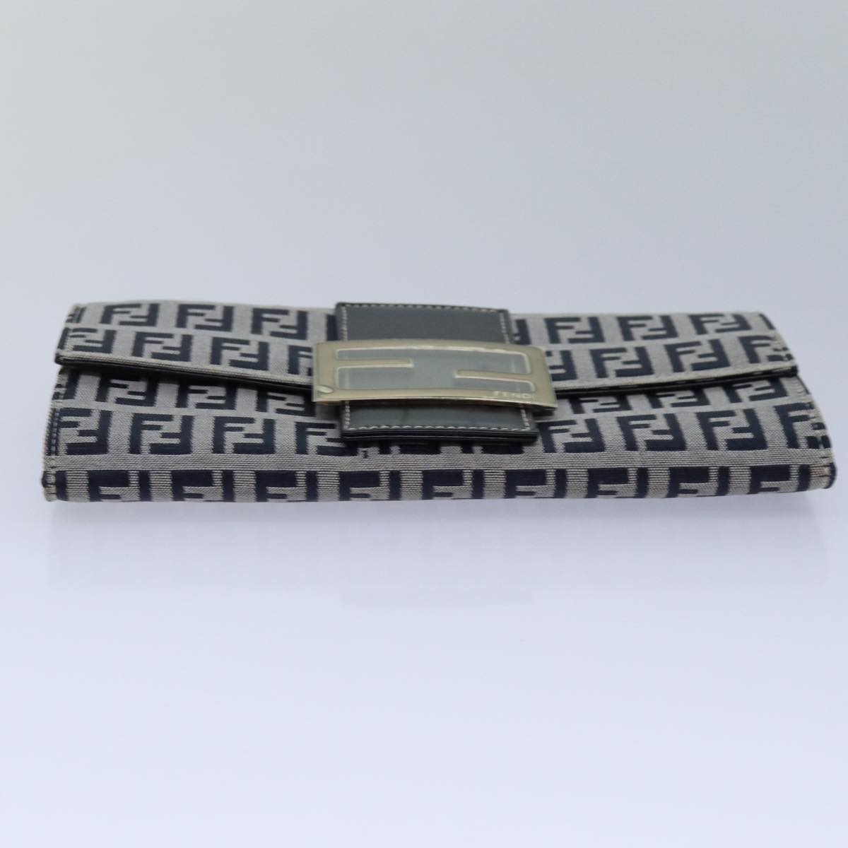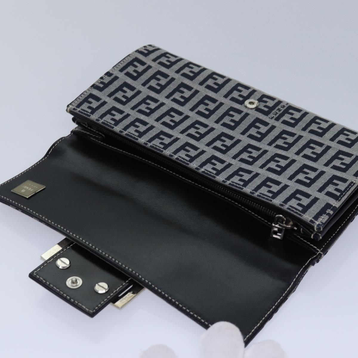 FENDI Zucchino Canvas Long Wallet Navy Auth yk13654