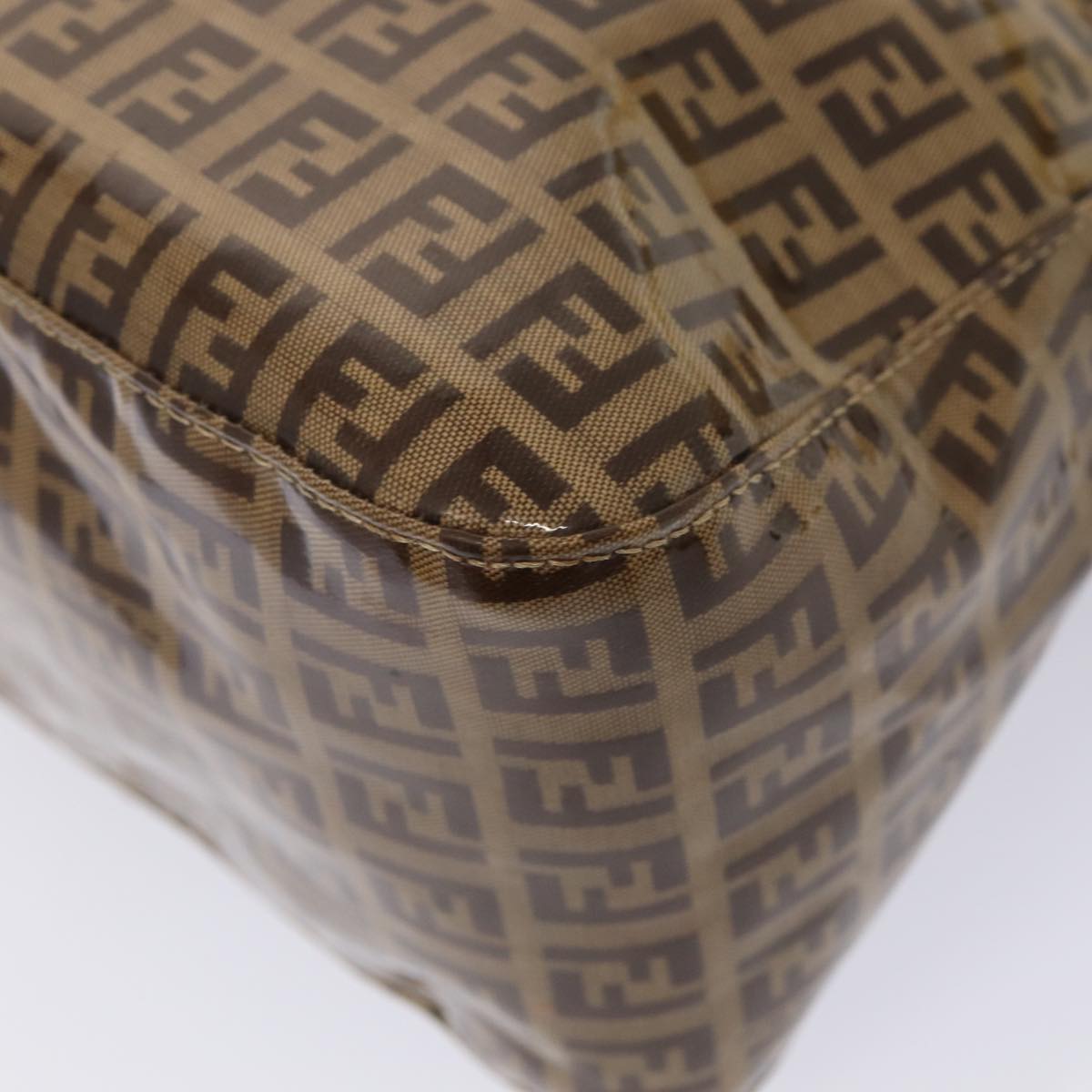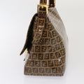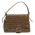 FENDI Zucchino Canvas Mamma Baguette Shoulder Bag Beige Auth am6583