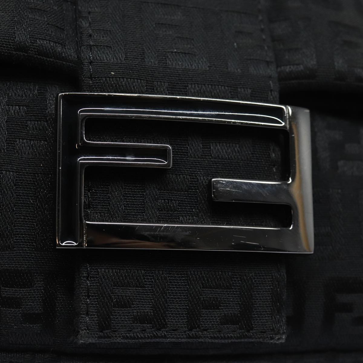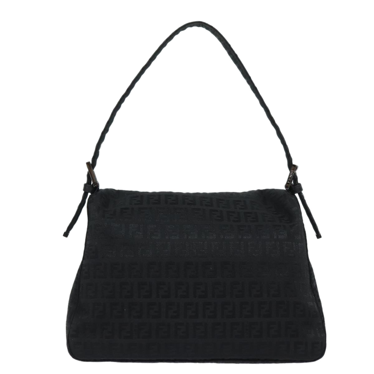 FENDI Zucchino Canvas Mamma Baguette Shoulder Bag Black Auth yk13812A