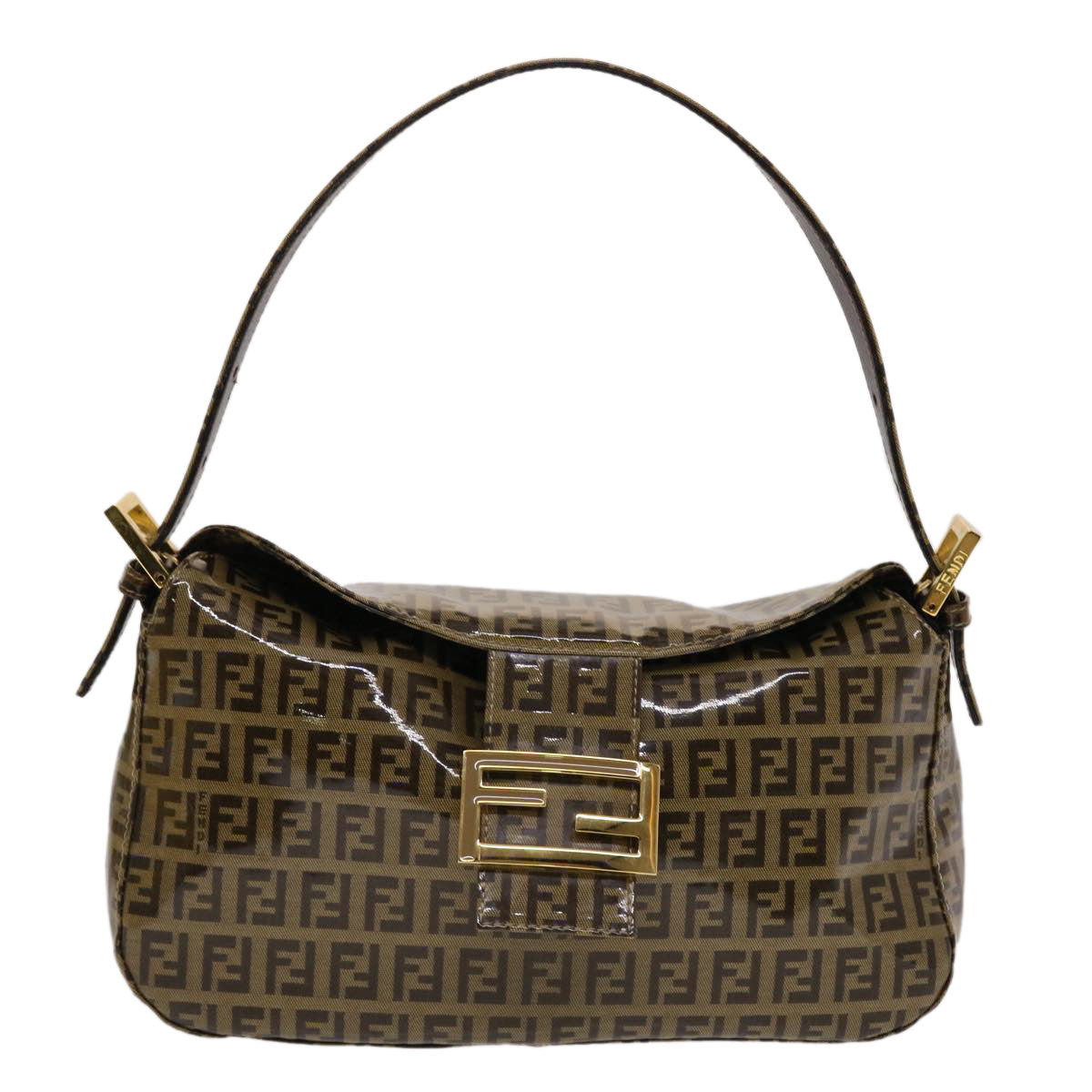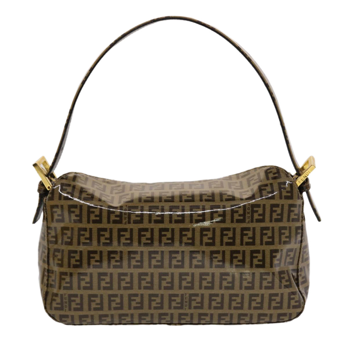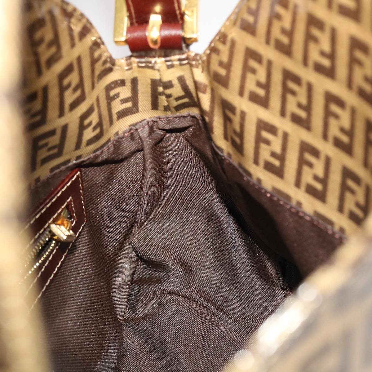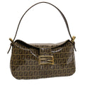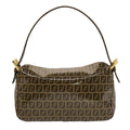 FENDI Zucchino Canvas Mamma Baguette Shoulder Bag Brown Auth yk7943