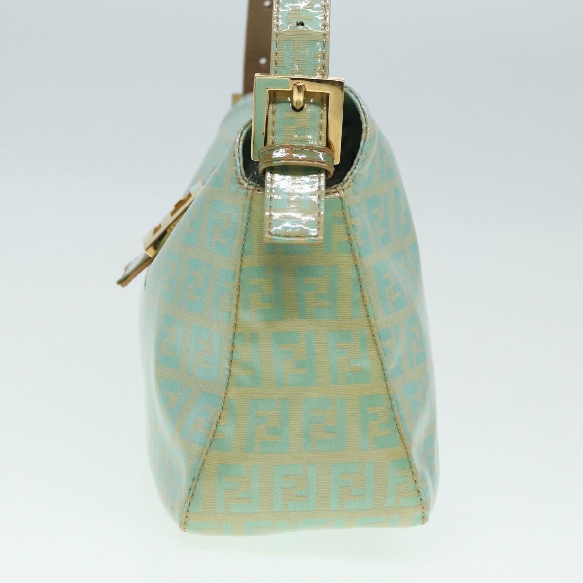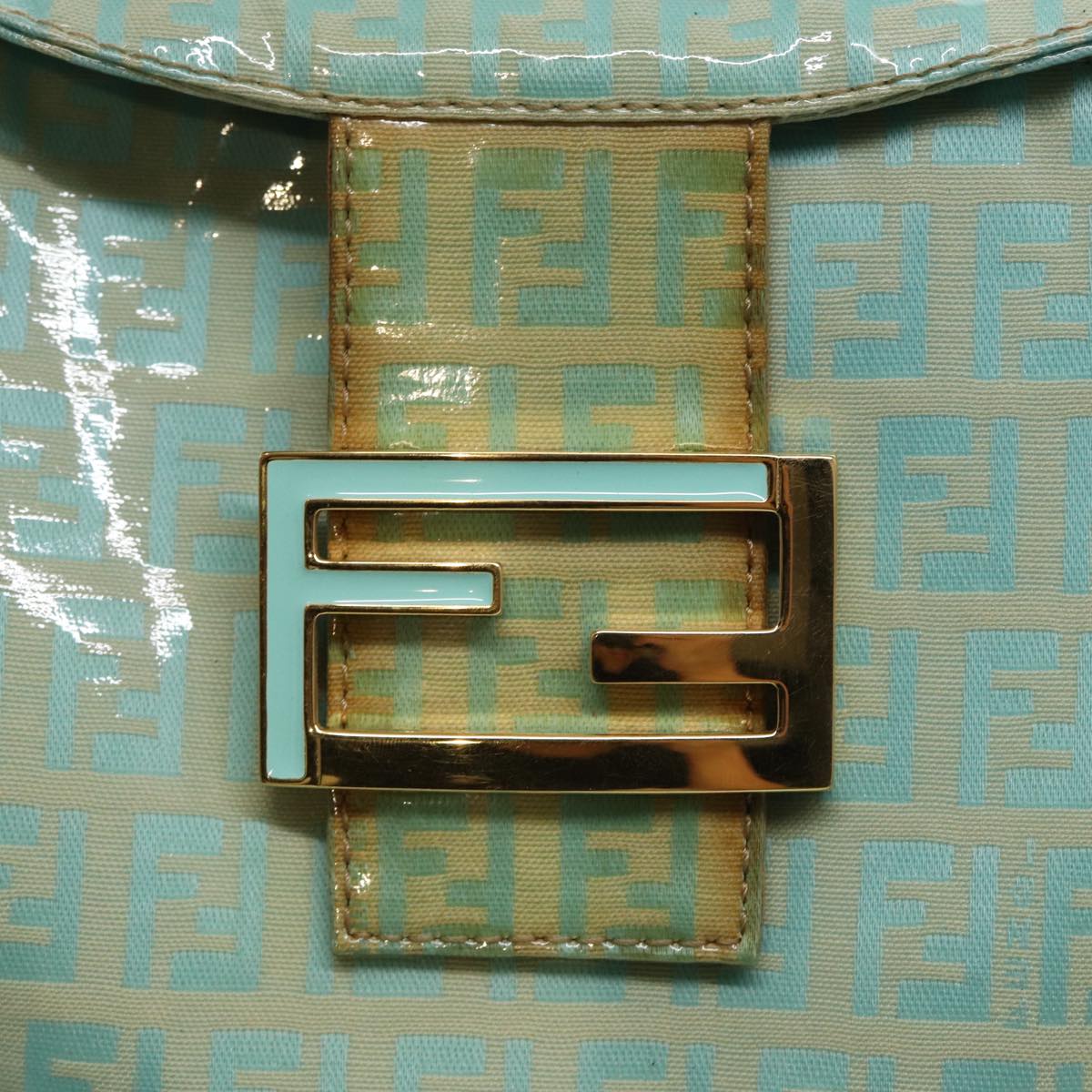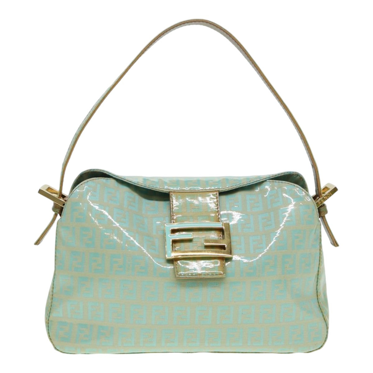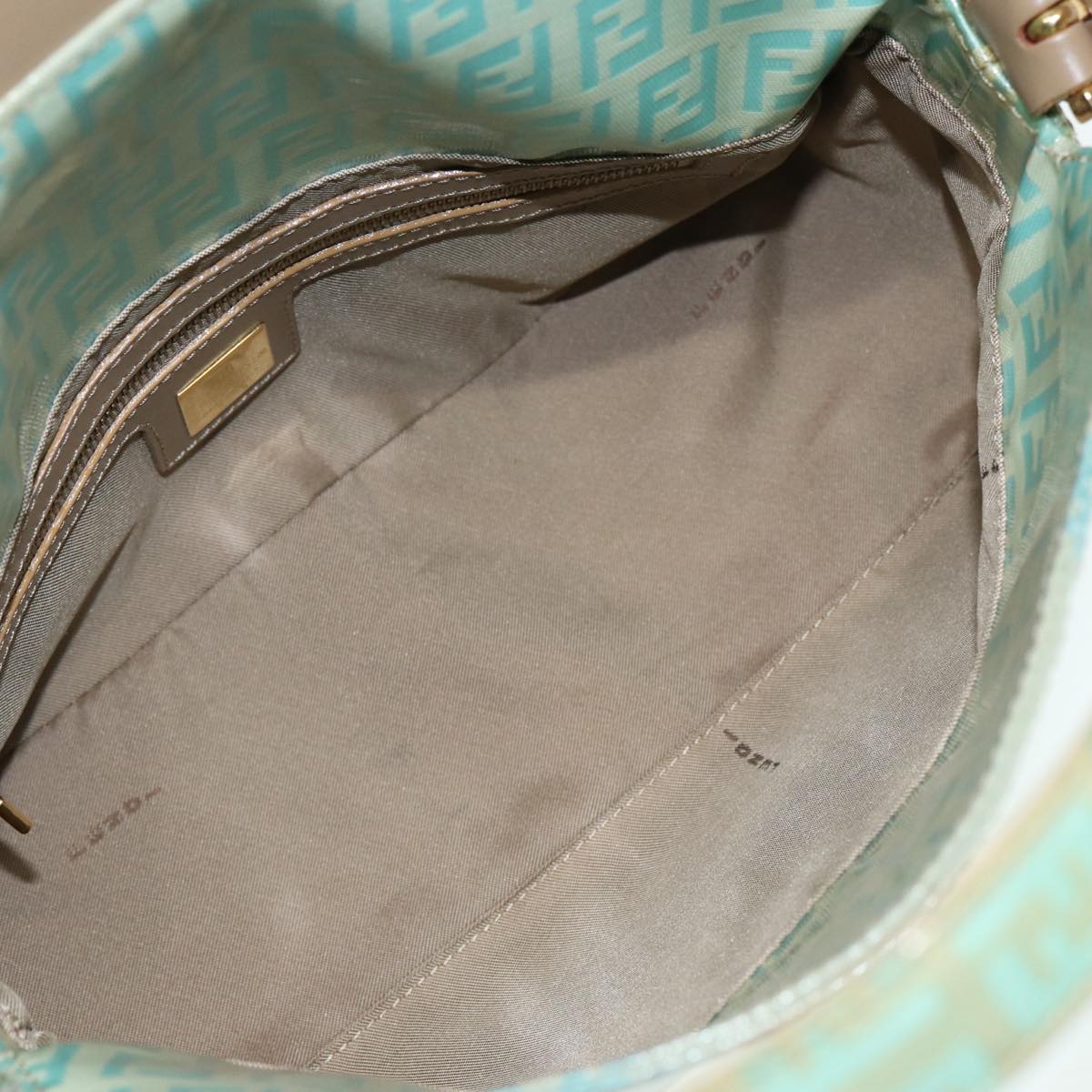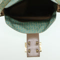 FENDI Zucchino Canvas Mamma Baguette Shoulder Bag Enamel Gold Green Auth ep5220
