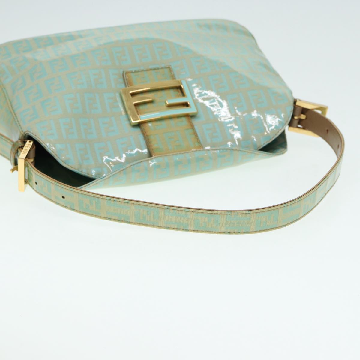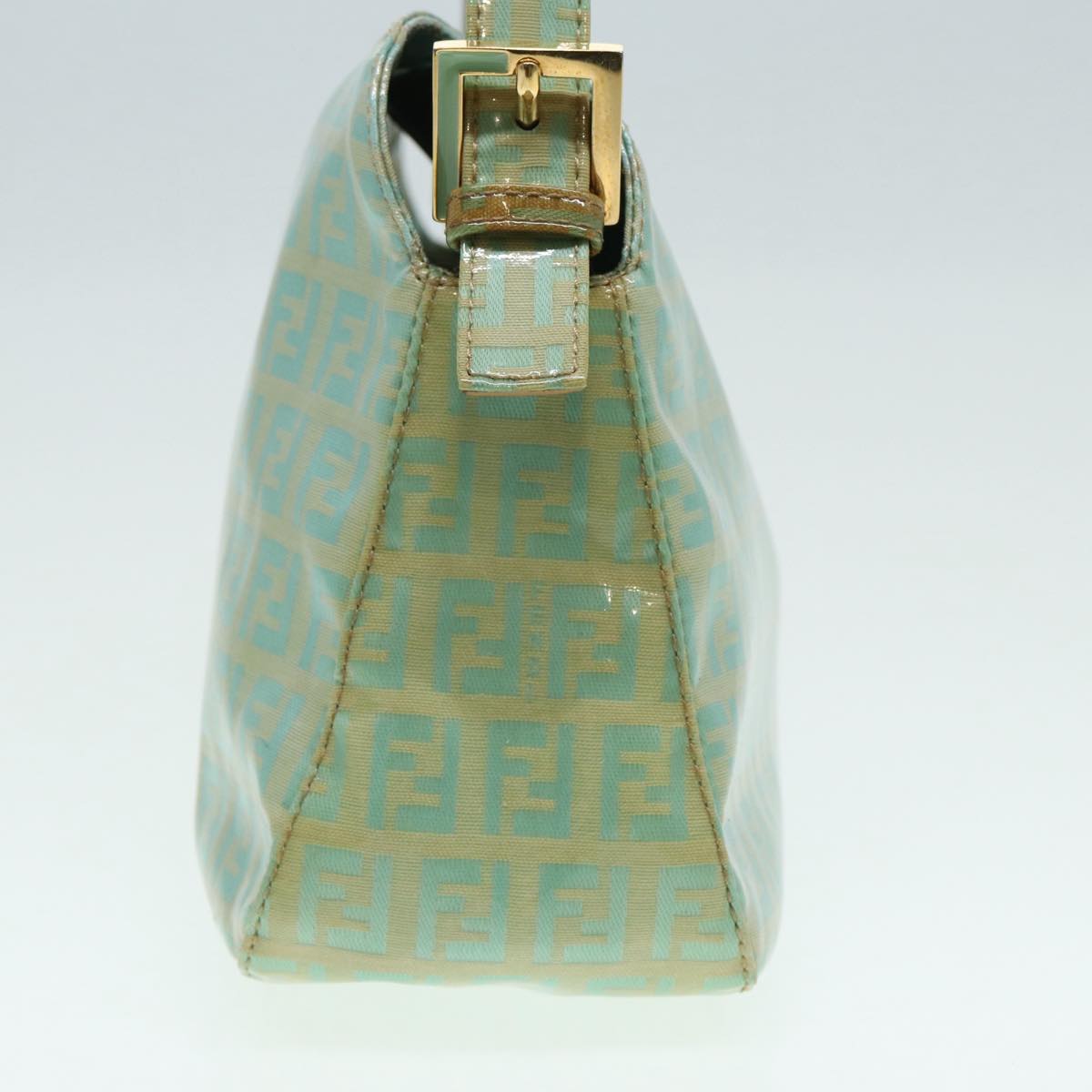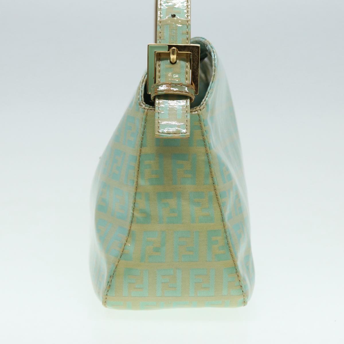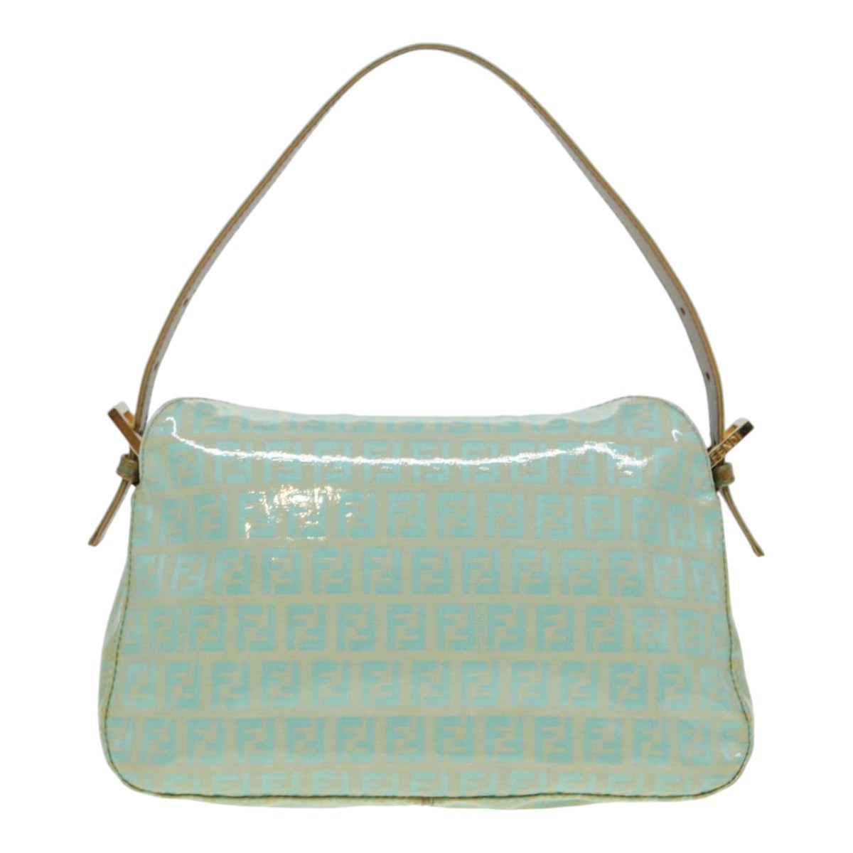FENDI Zucchino Canvas Mamma Baguette Shoulder Bag Enamel Gold Green Auth ep5220