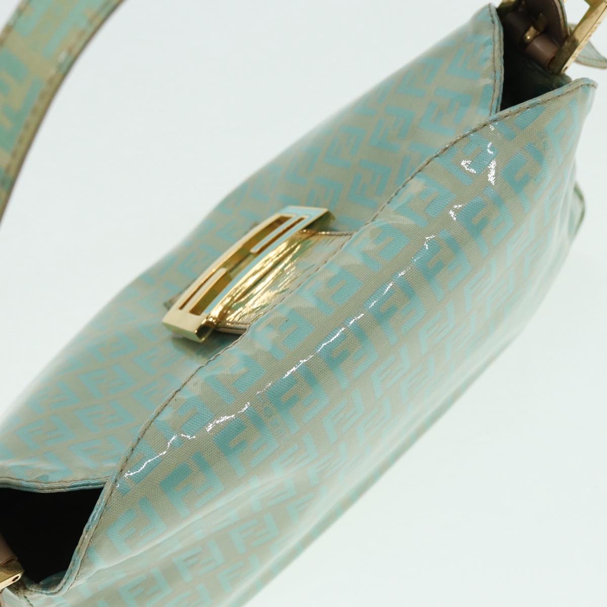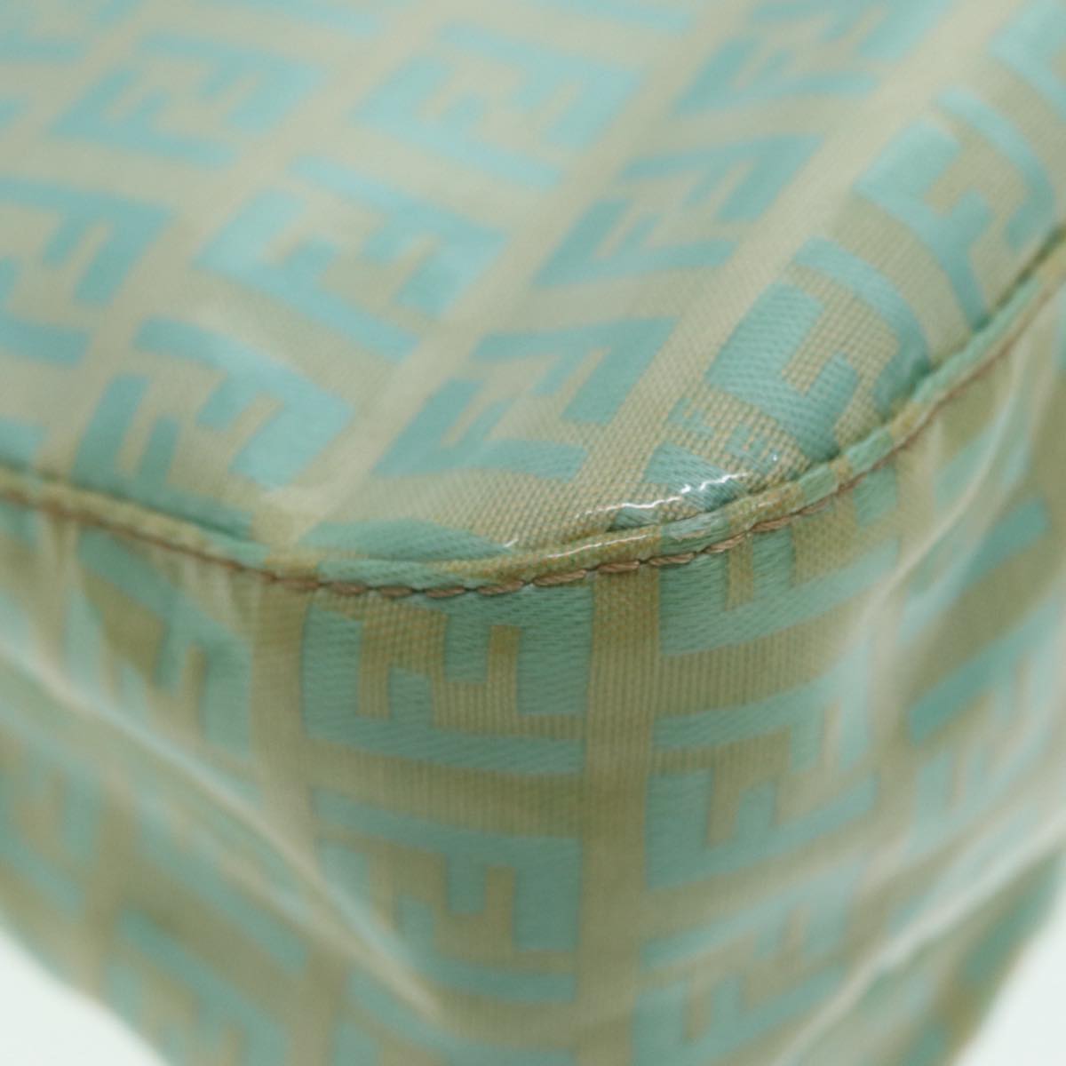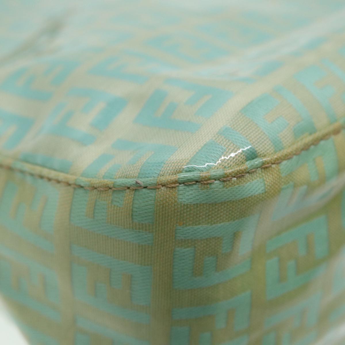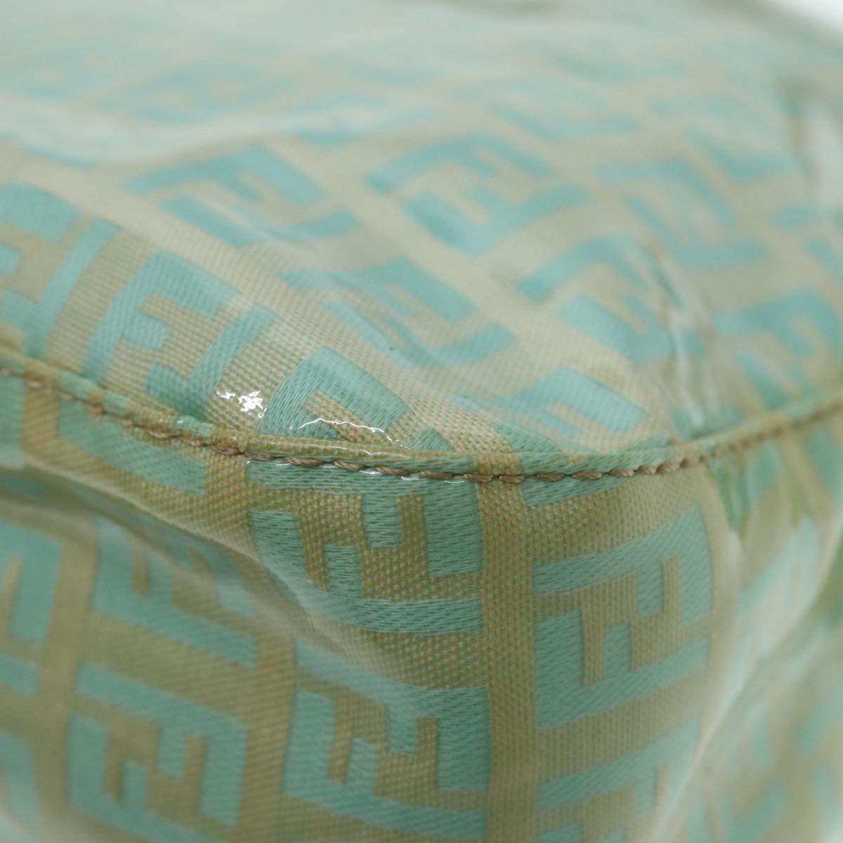 FENDI Zucchino Canvas Mamma Baguette Shoulder Bag Enamel Gold Green Auth ep5220