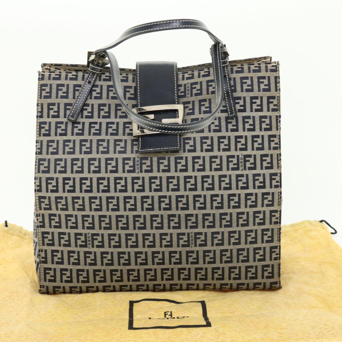FENDI Zucchino Canvas Mamma Baguette Shoulder Bag Navy Auth 39439