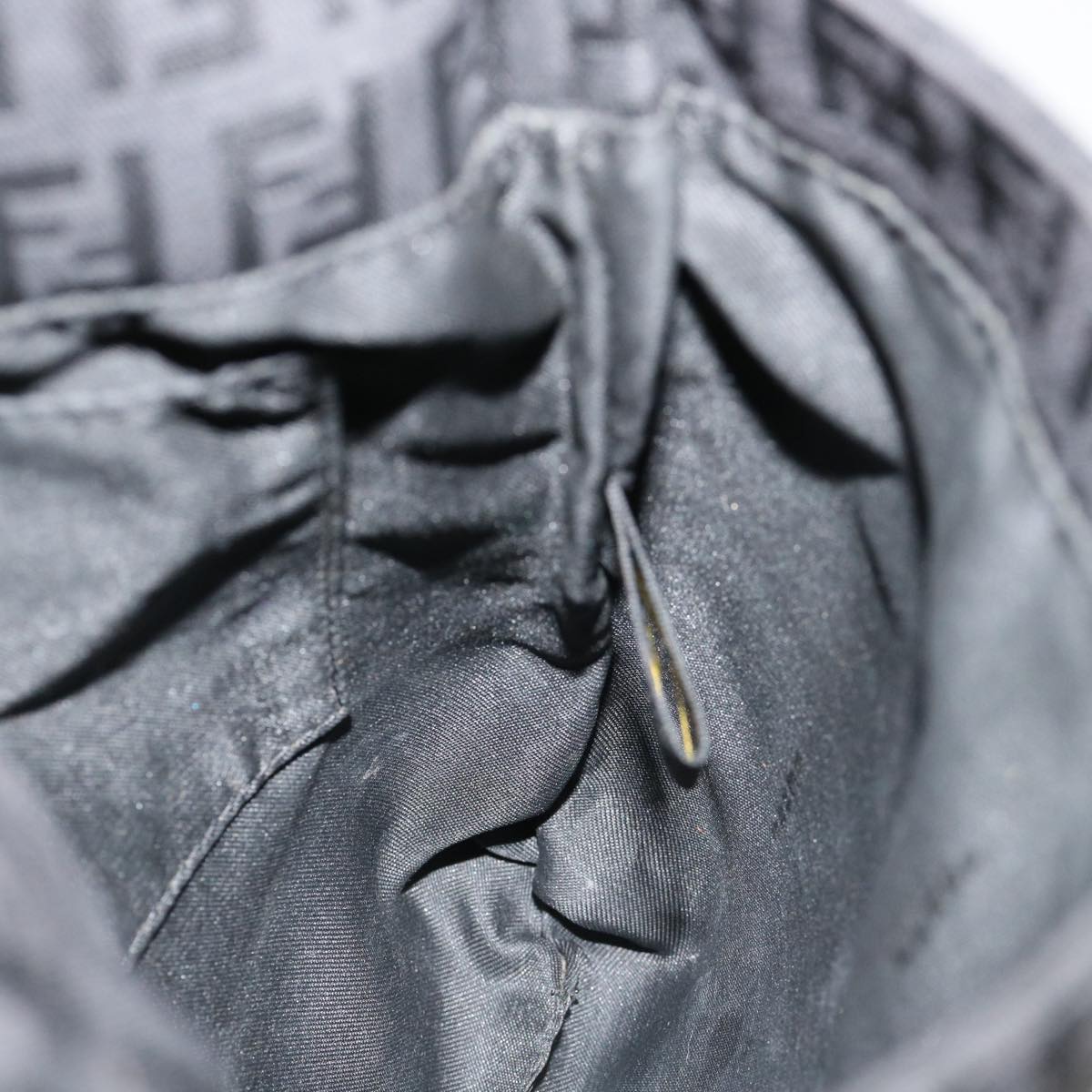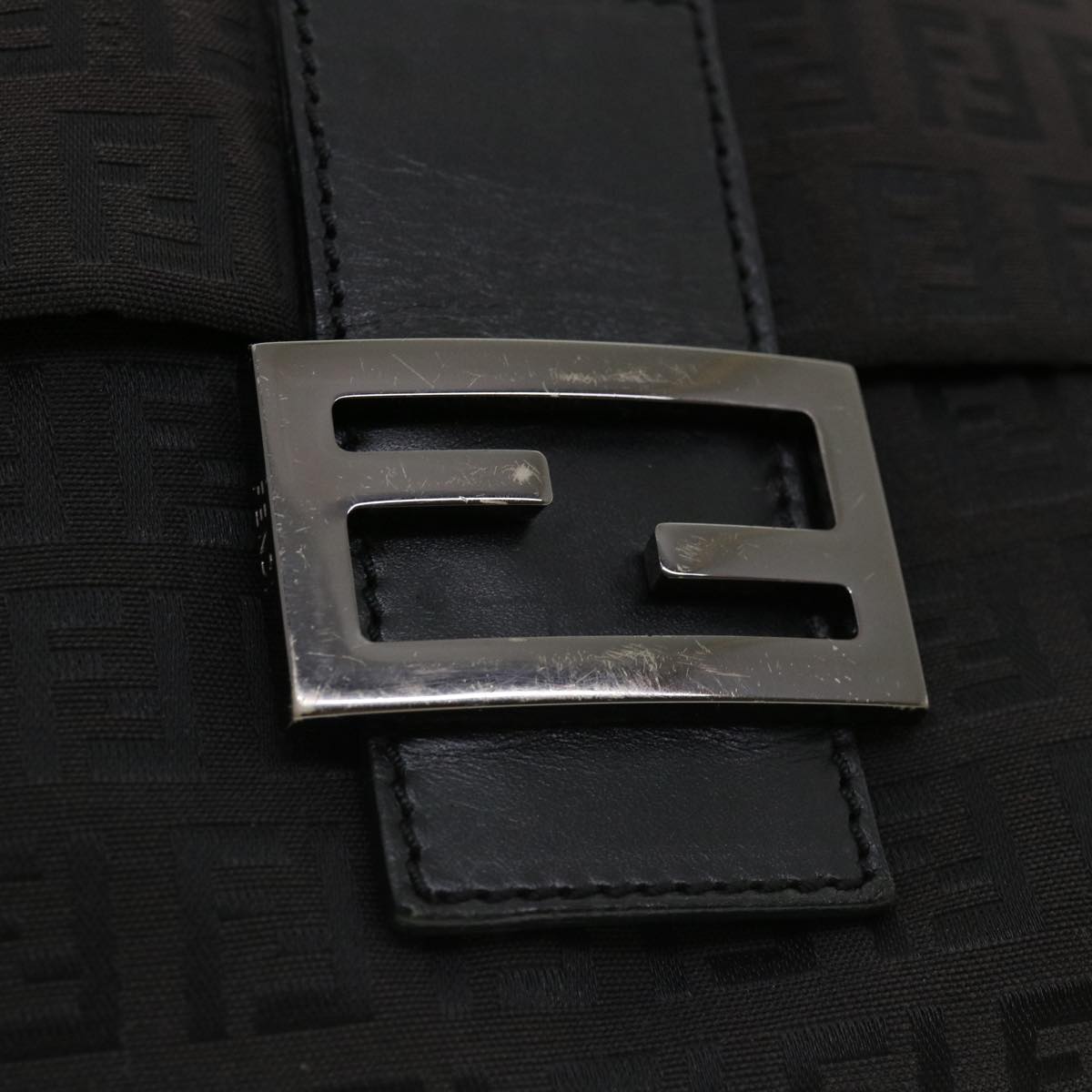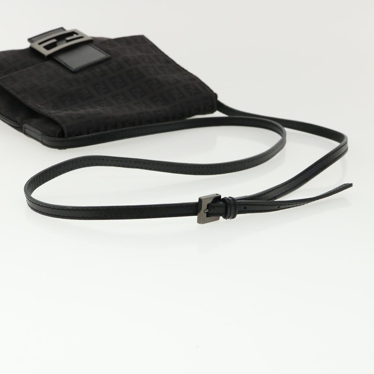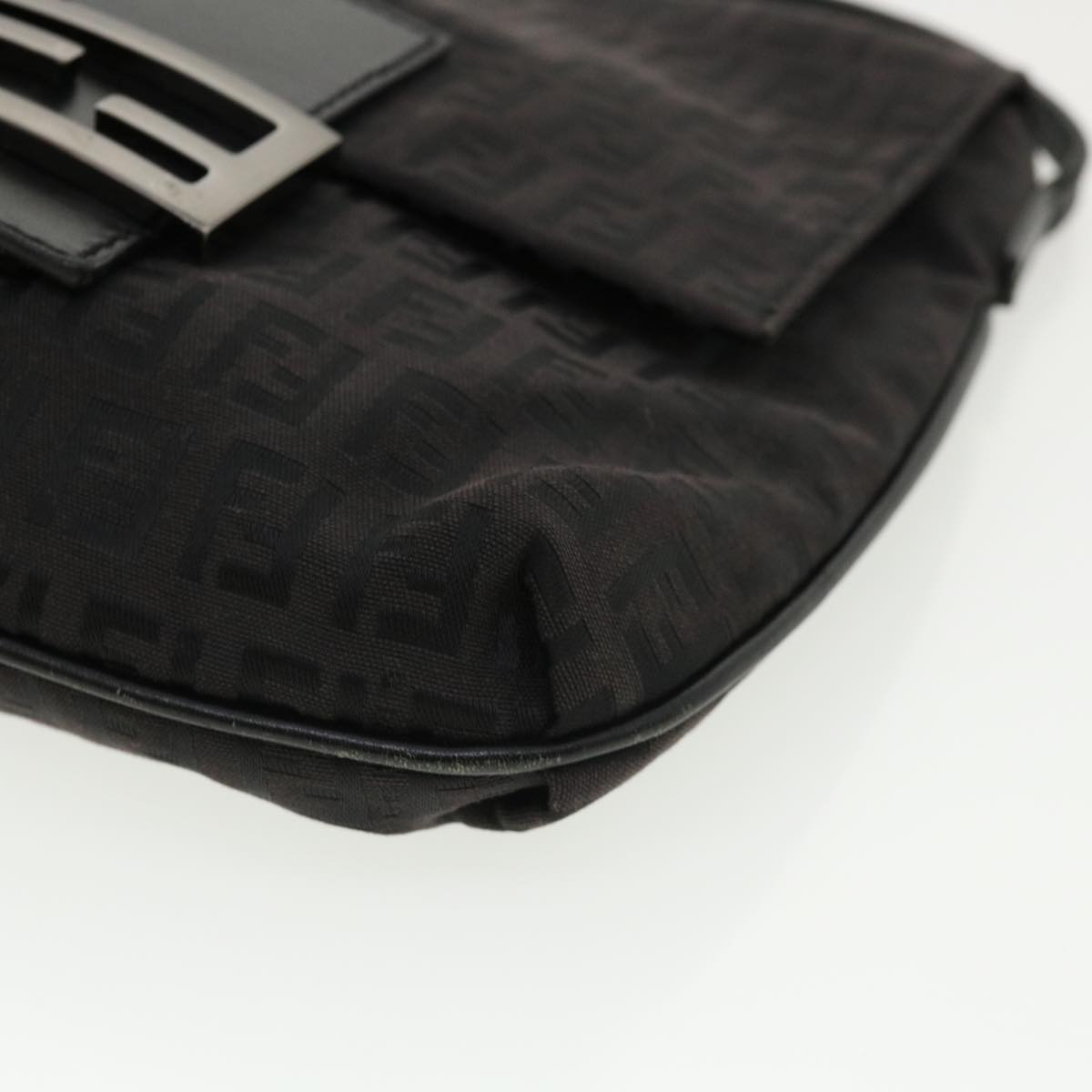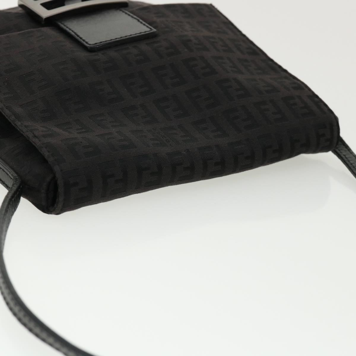 FENDI Zucchino Canvas Mamma Baguette Shoulder Bag Nylon Black Auth rd3006