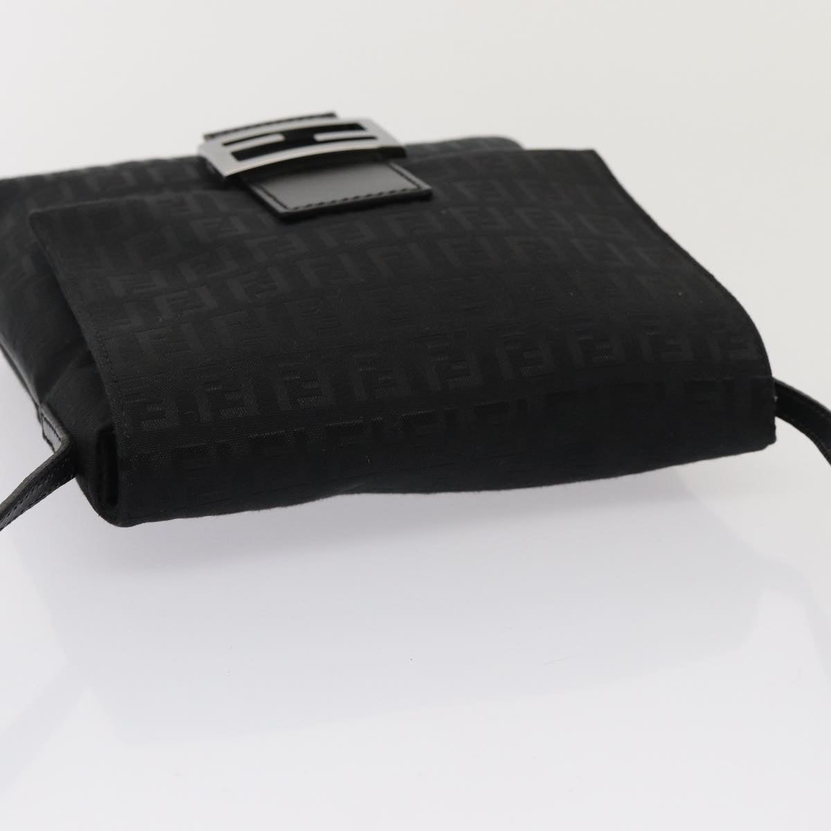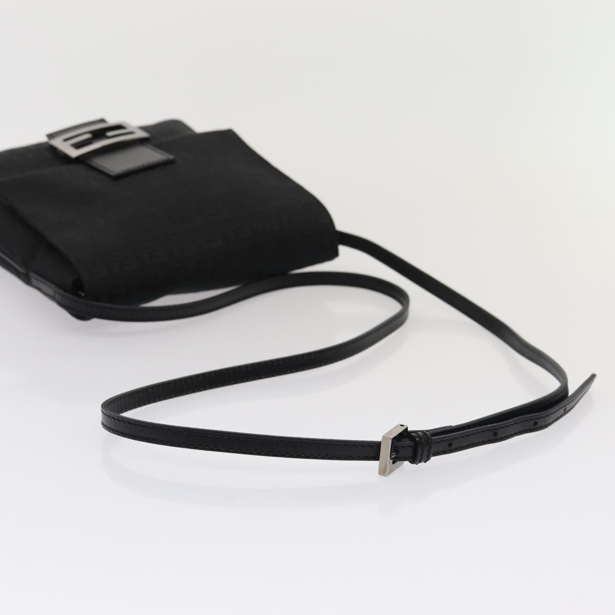 FENDI Zucchino Canvas Mamma Shoulder Bag Black Auth mr359
