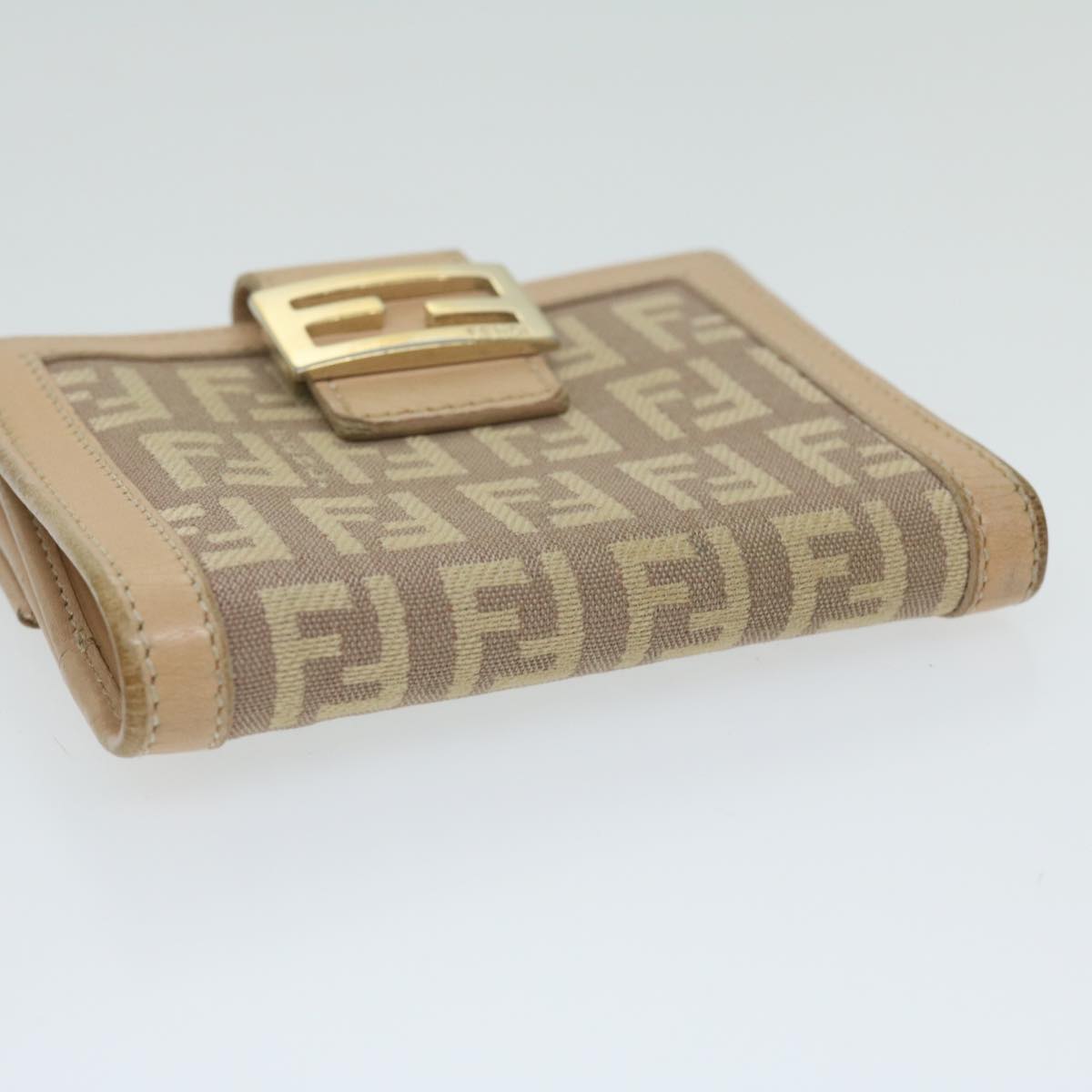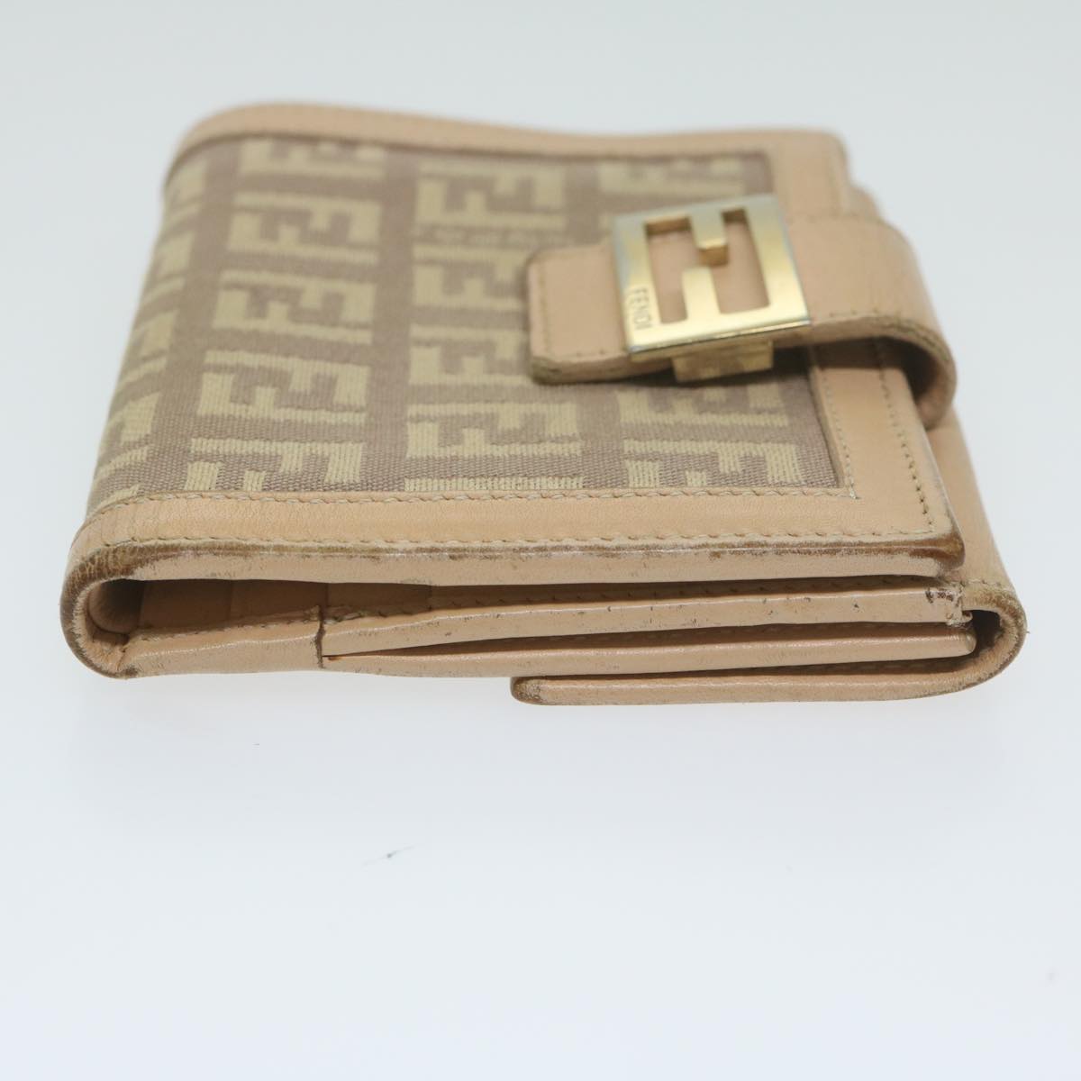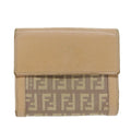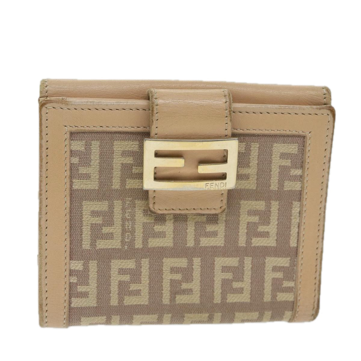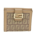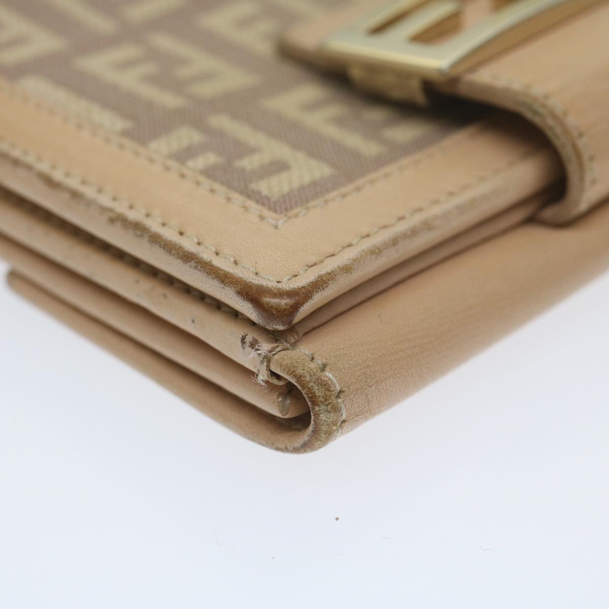 FENDI Zucchino Canvas Mamma Wallet Beige Auth ai712