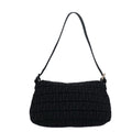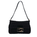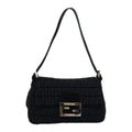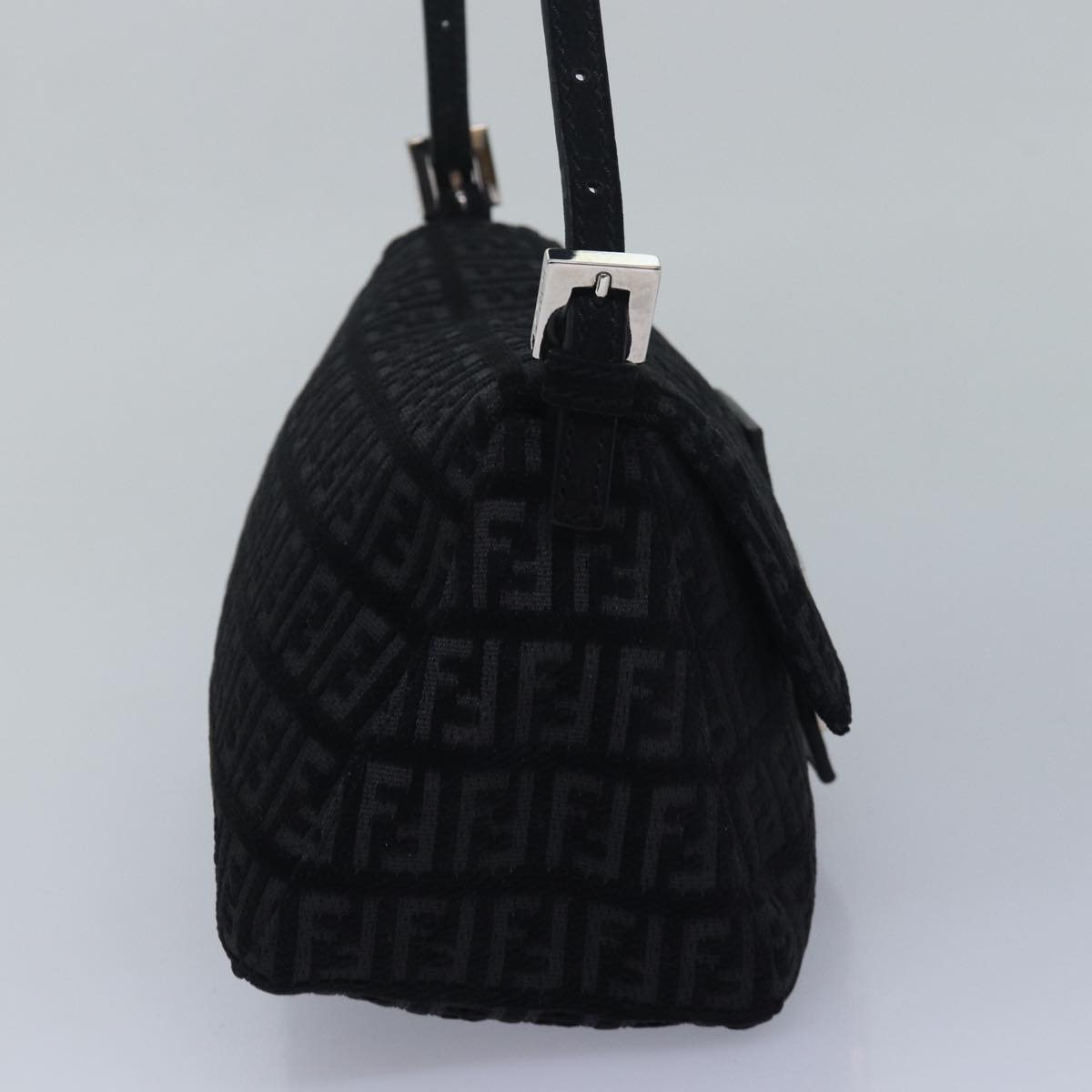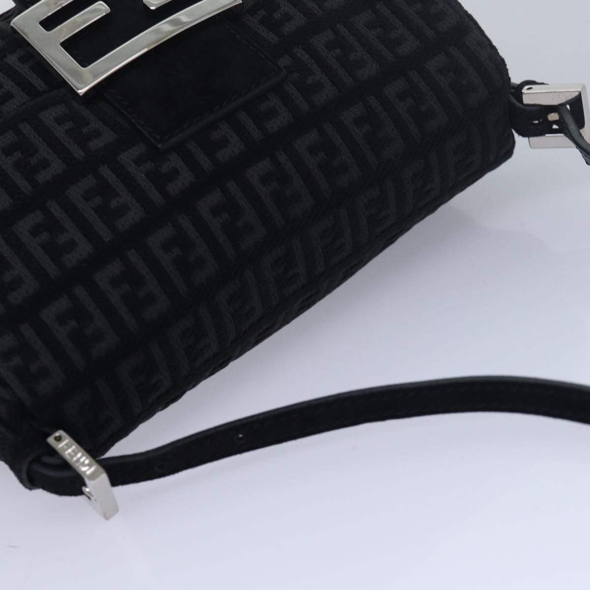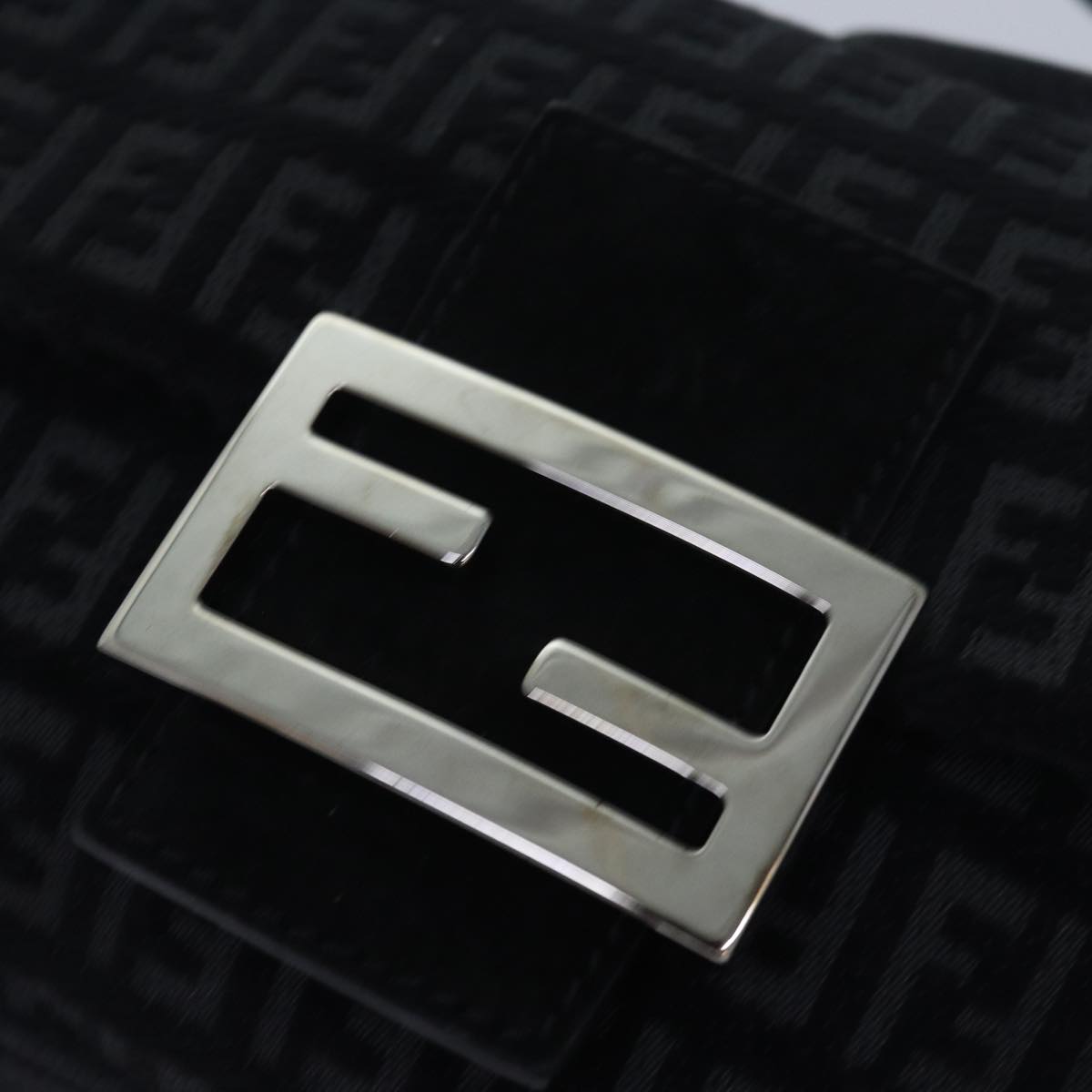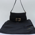 FENDI Zucchino Canvas Mini Mamma Baguette Shoulder Bag Black Auth am6553A
