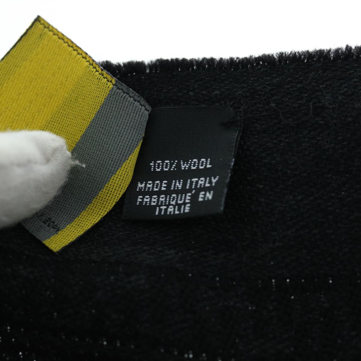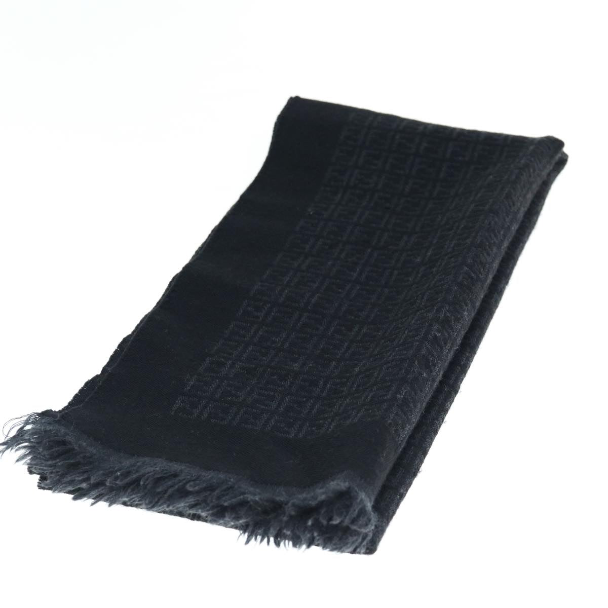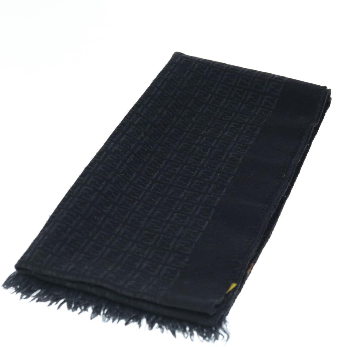 FENDI Zucchino Canvas Scarf Wool Black Auth ti1475