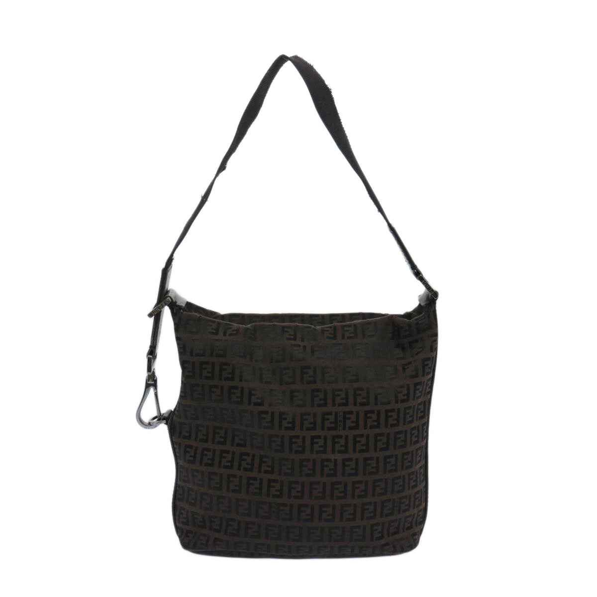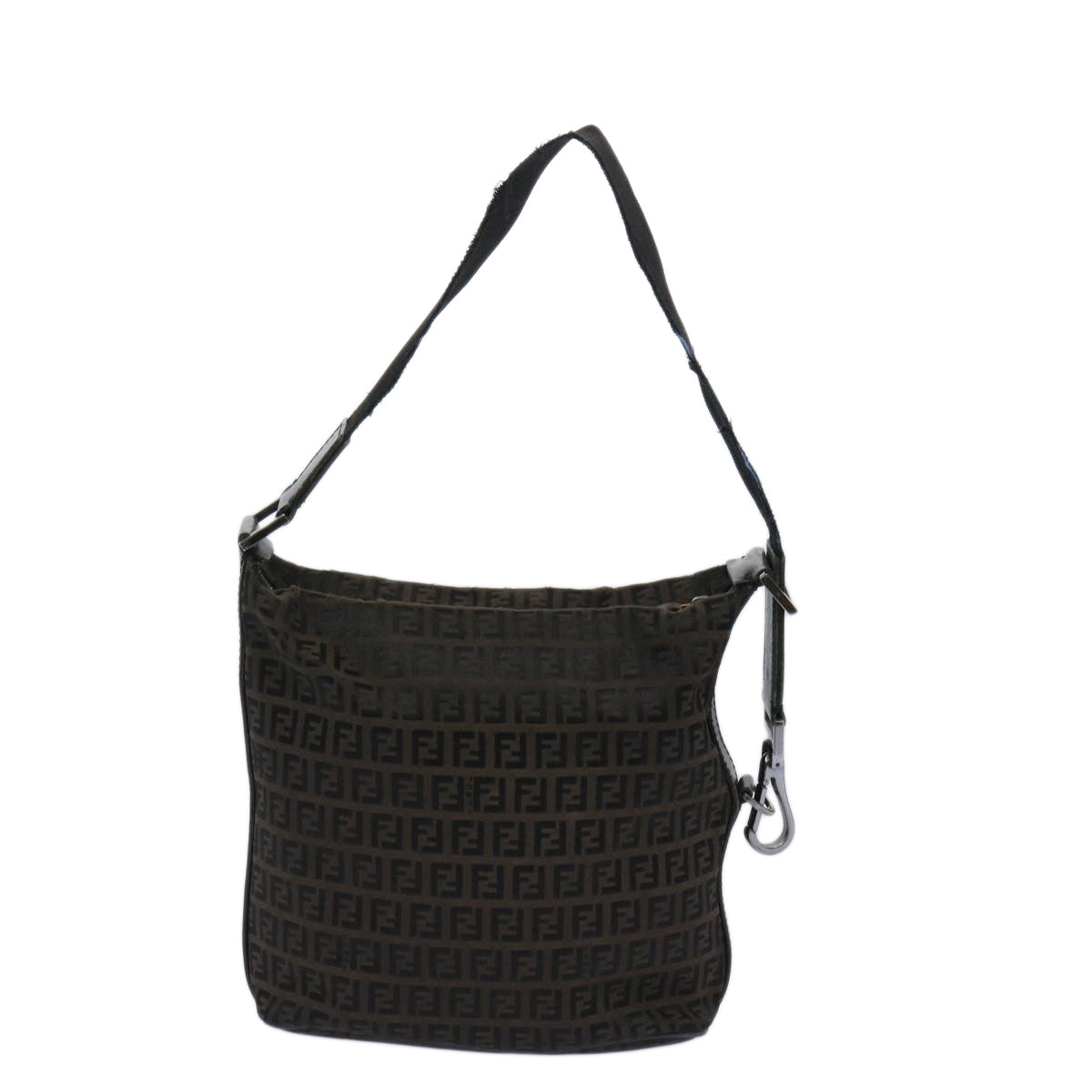 FENDI Zucchino Canvas Shoulder Bag Brown Auth 66016