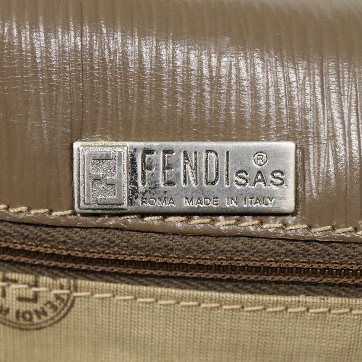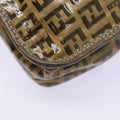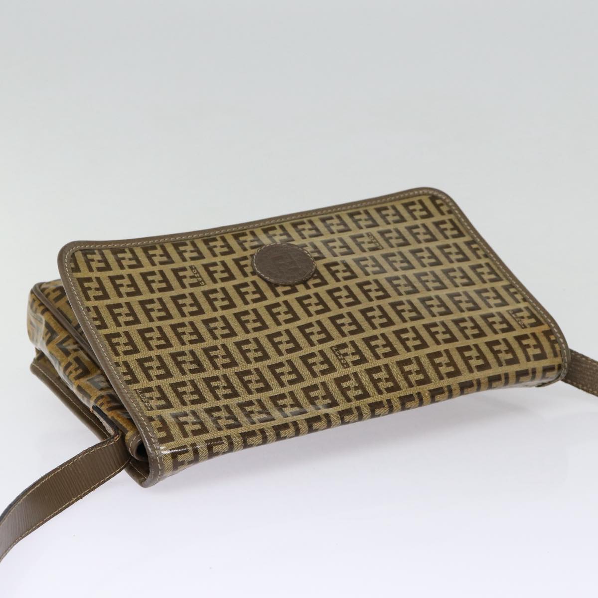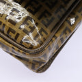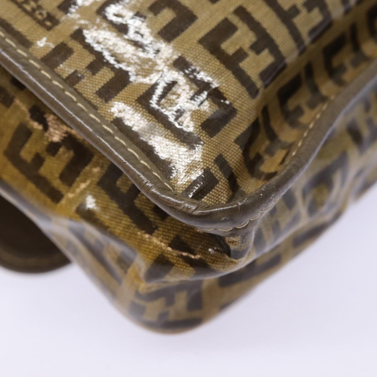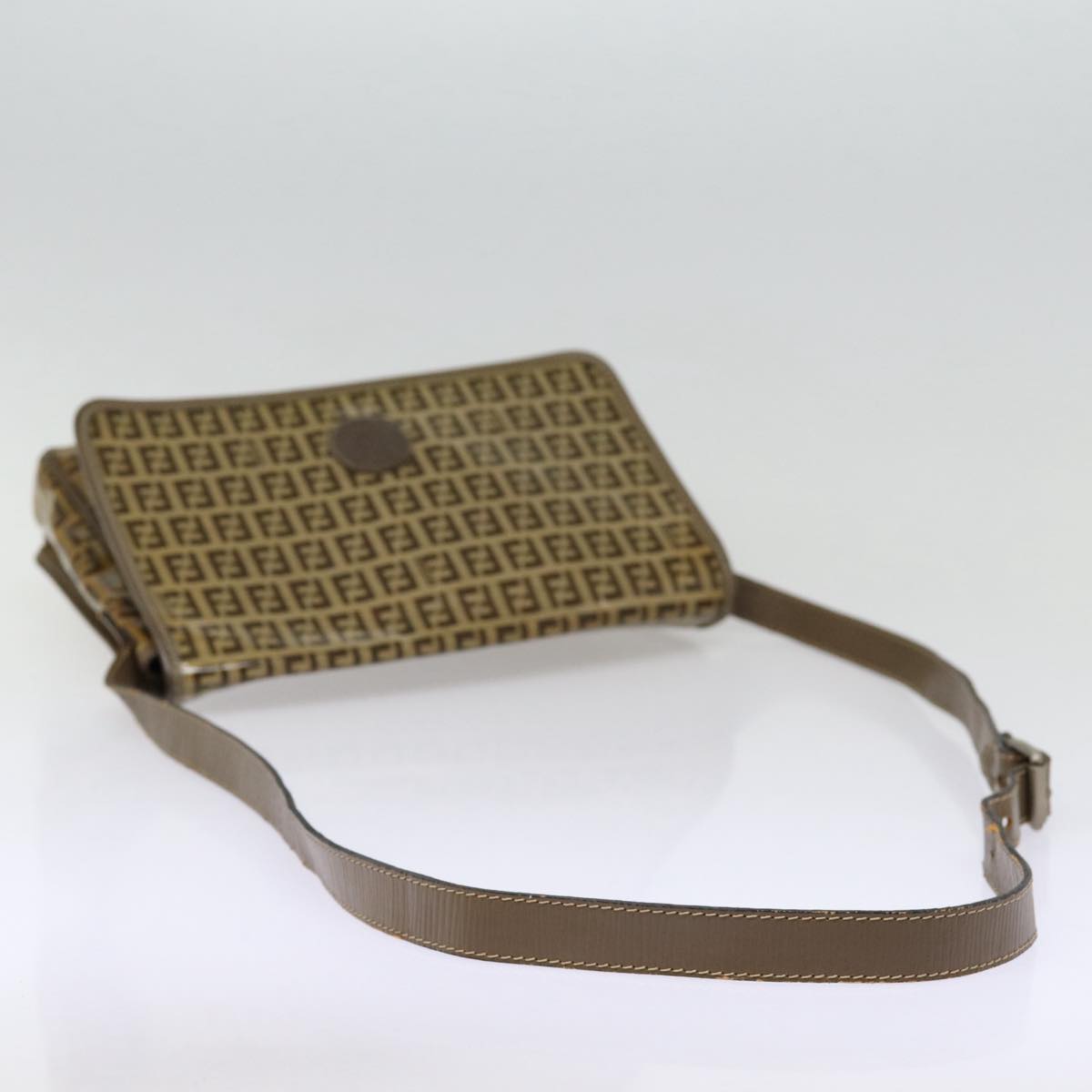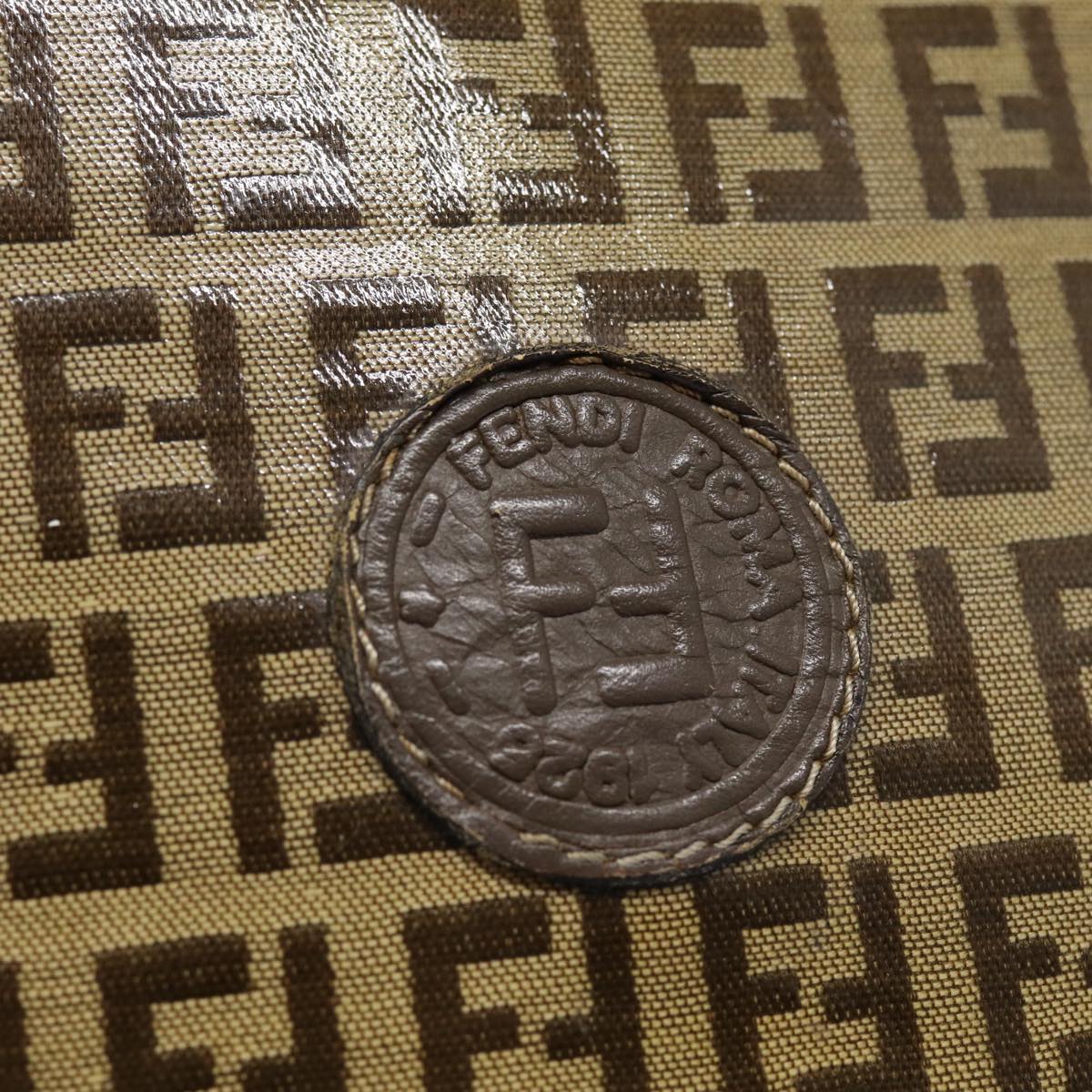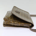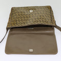 FENDI Zucchino Canvas Shoulder Bag Brown Silver Auth mr463