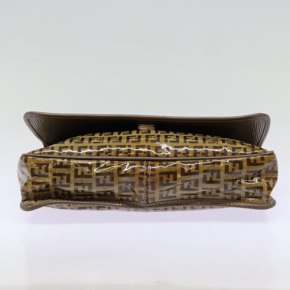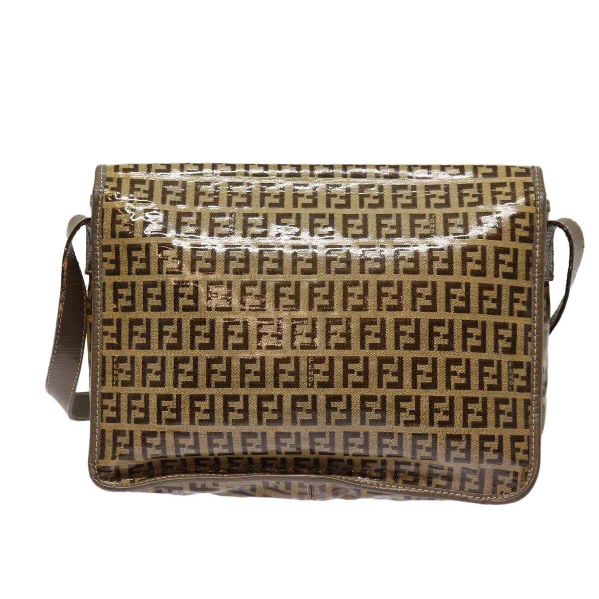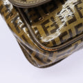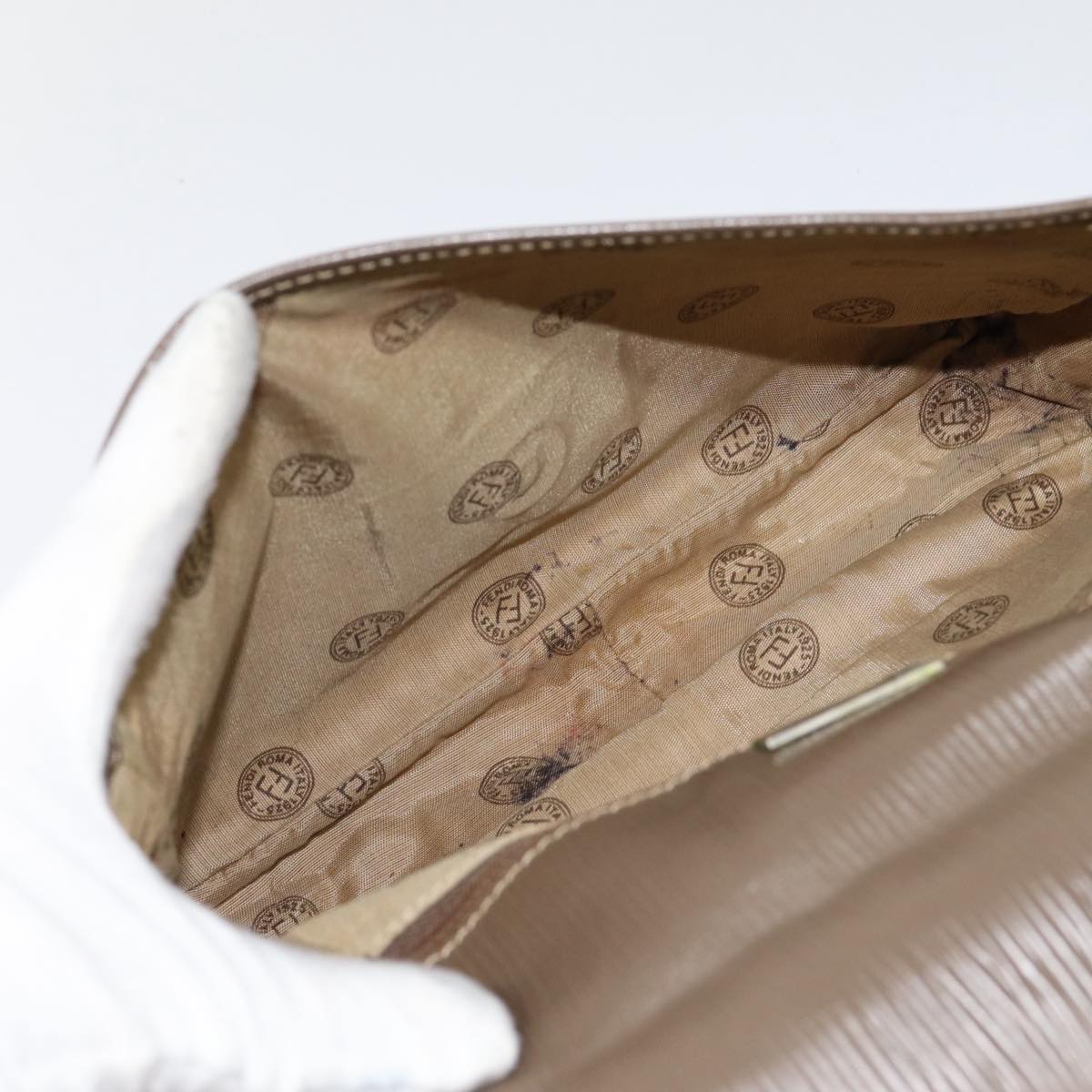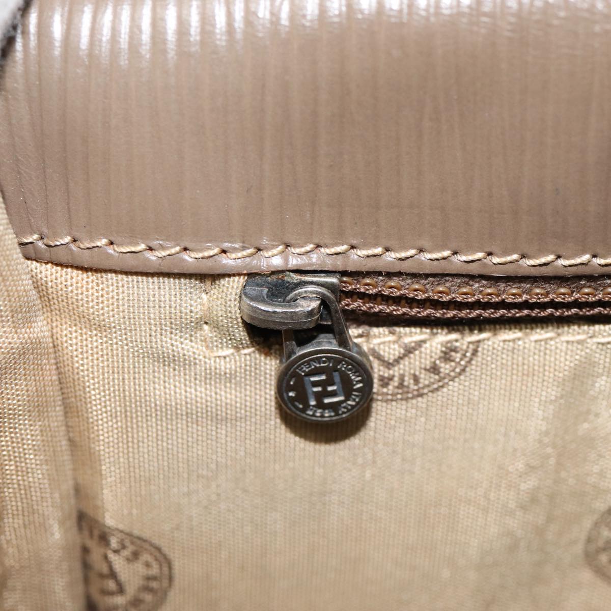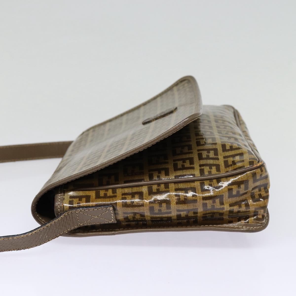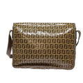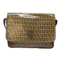 FENDI Zucchino Canvas Shoulder Bag Brown Silver Auth mr463