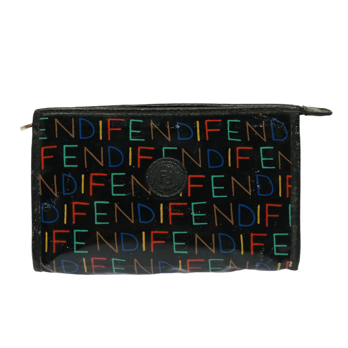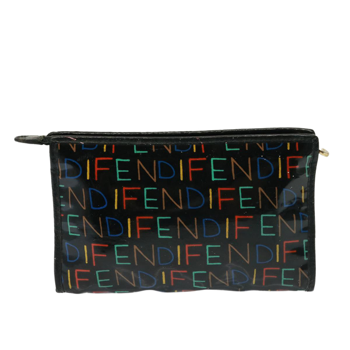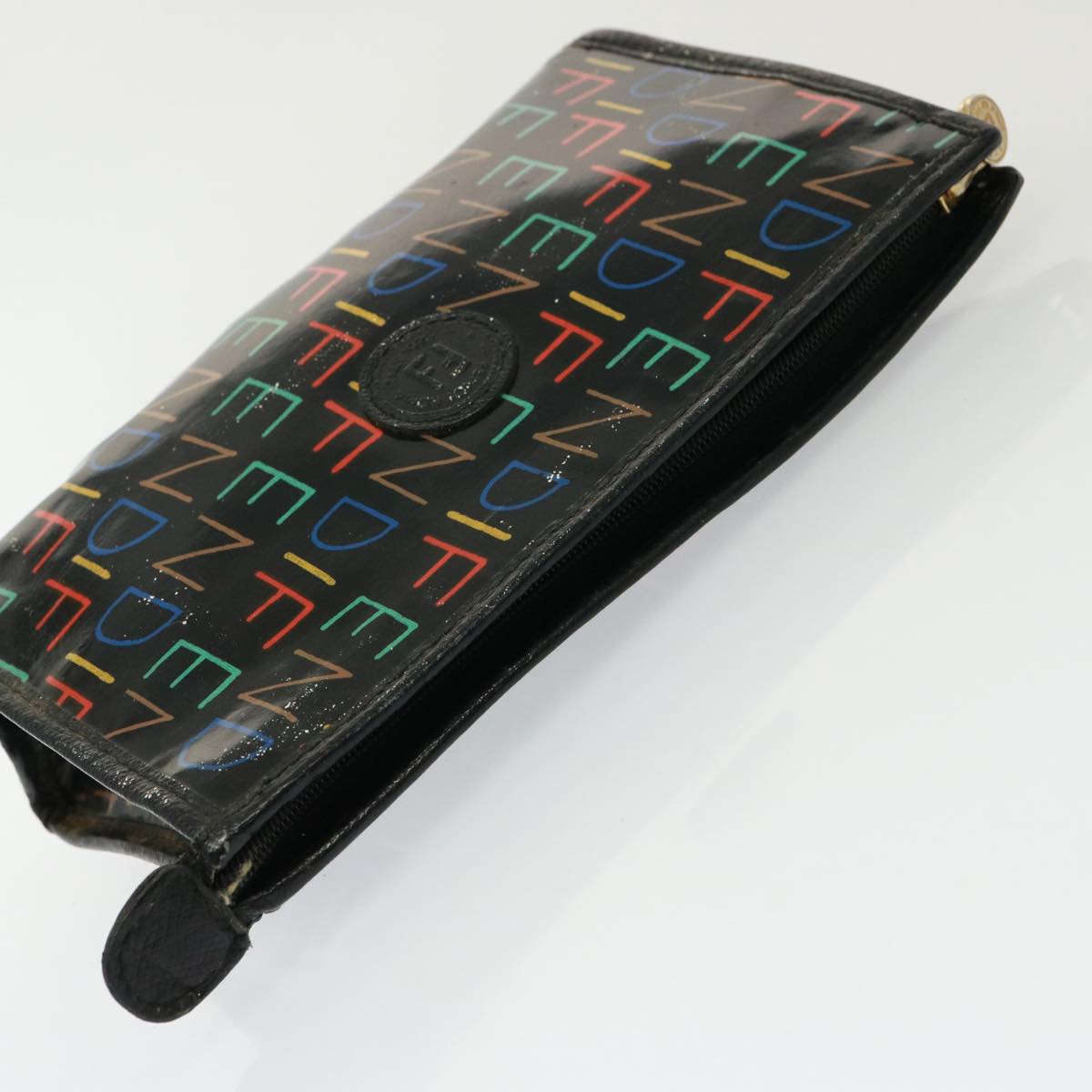 FENDI Zucchino Canvas Shoulder Bag Coated Canvas 3Set Black Beige Auth bs14590