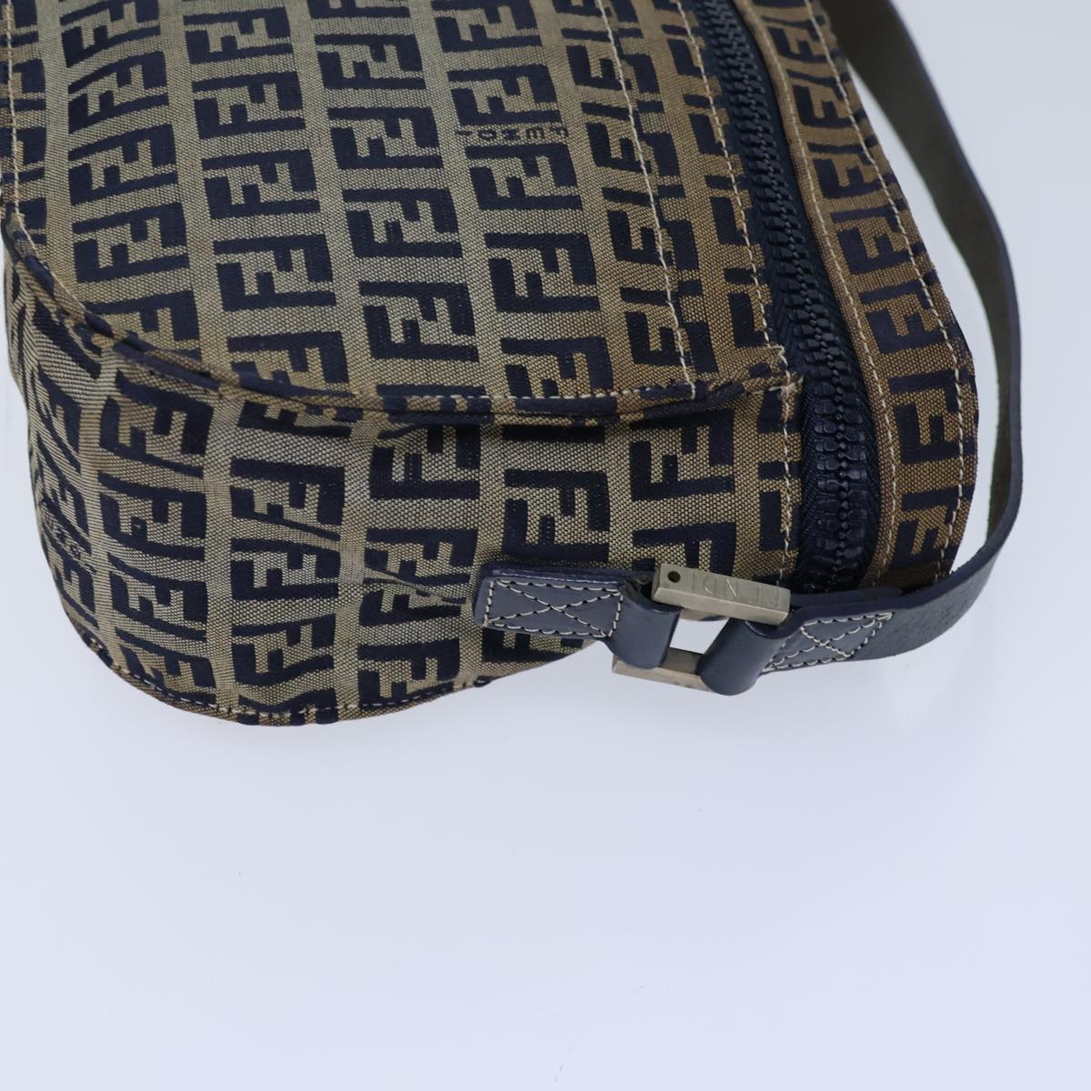 FENDI Zucchino Canvas Shoulder Bag Navy Auth bs13705