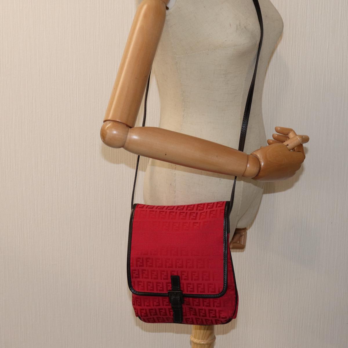 FENDI Zucchino Canvas Shoulder Bag Red 8BT052 Auth 82253