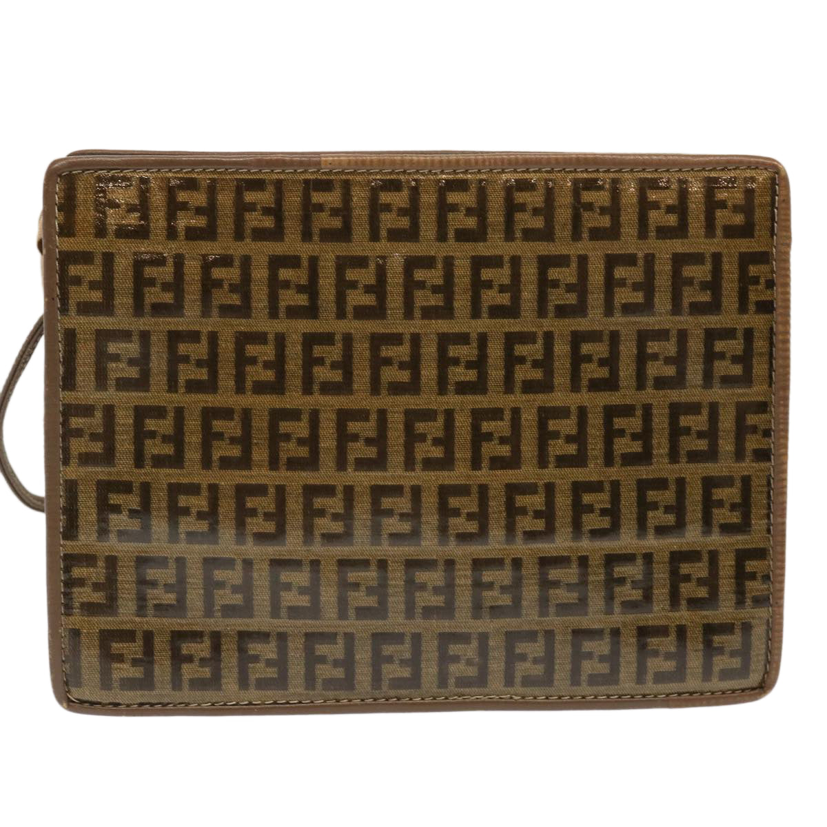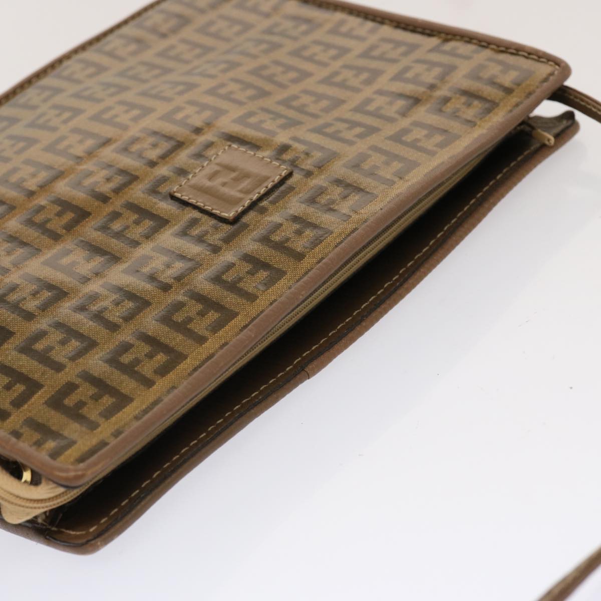 FENDI Zucchino Canvas Shoulder Bag Vintage Brown Auth ep3991