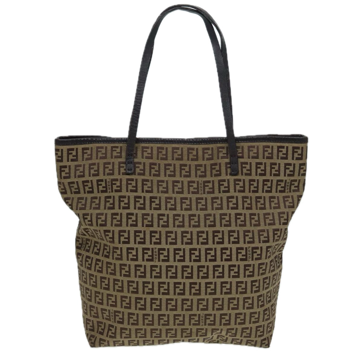 FENDI Zucchino Canvas Tote Bag Beige Auth hk1424