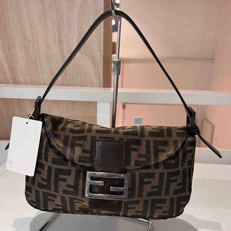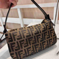 Fendi Zucchino Double Flap Baguette Shoulder Bag, Brown Canvas & Leather