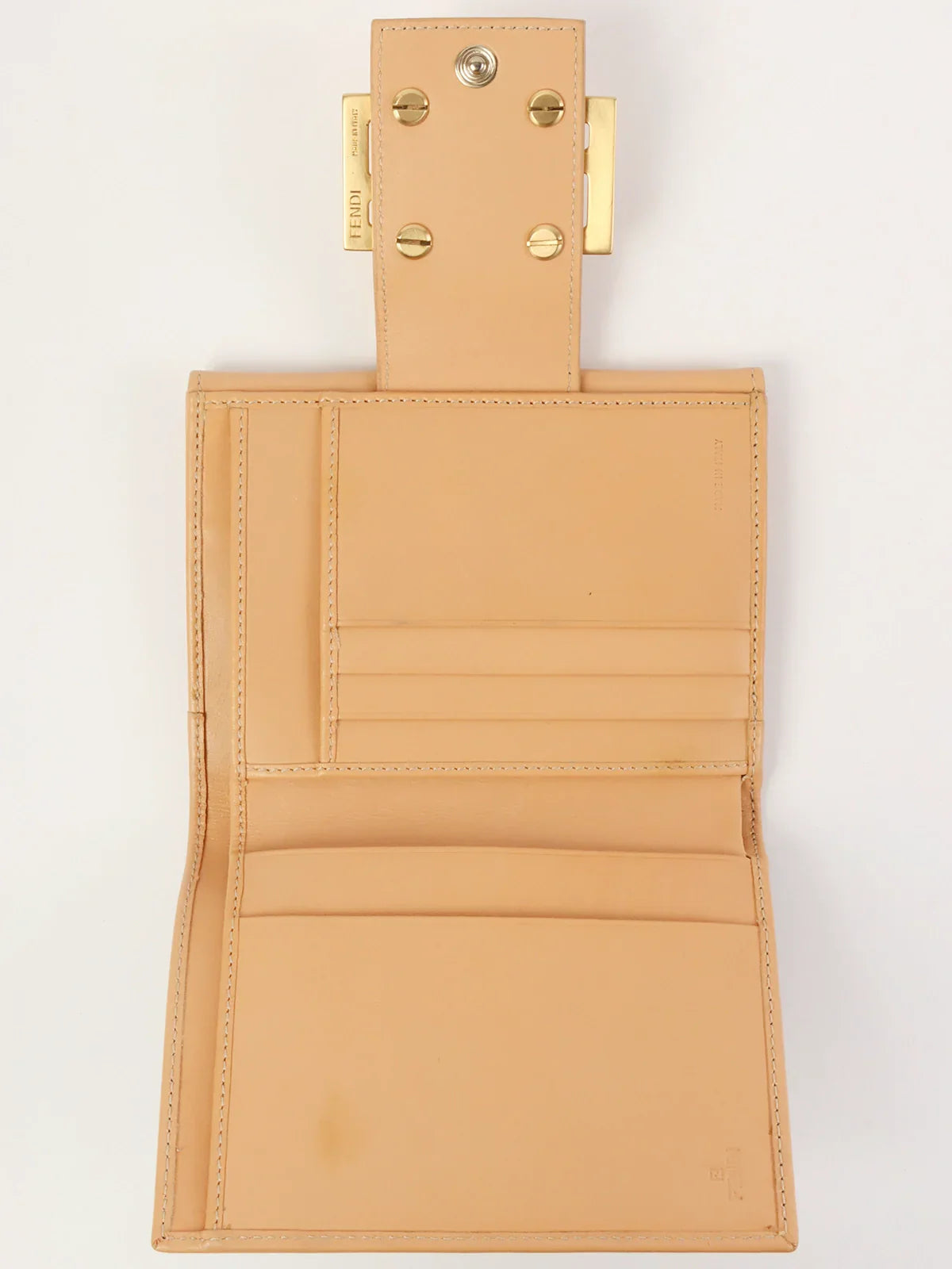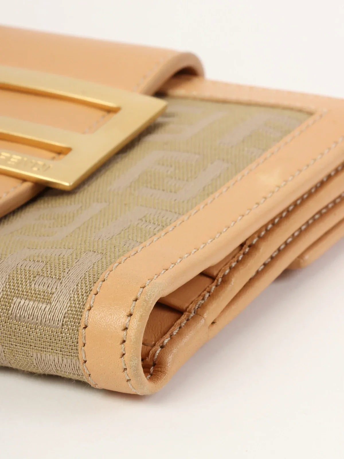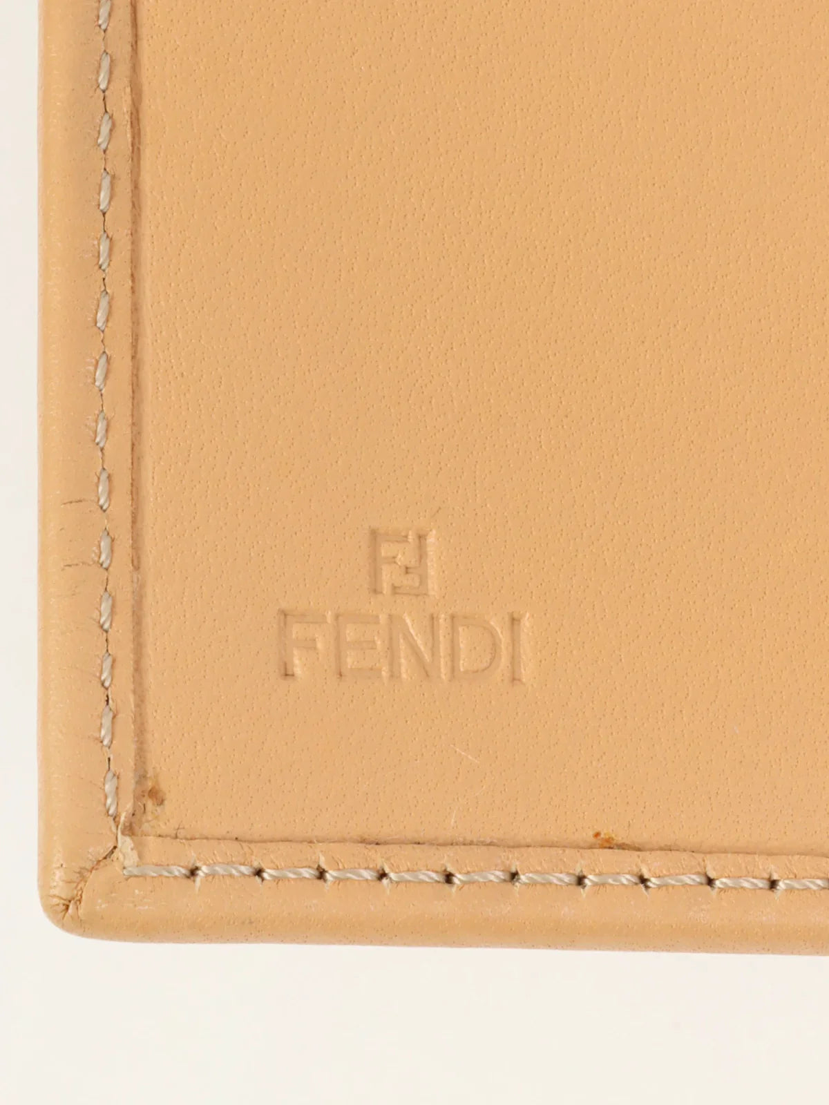 FENDI Zucchino Patten Logo Plate Wallet Beige