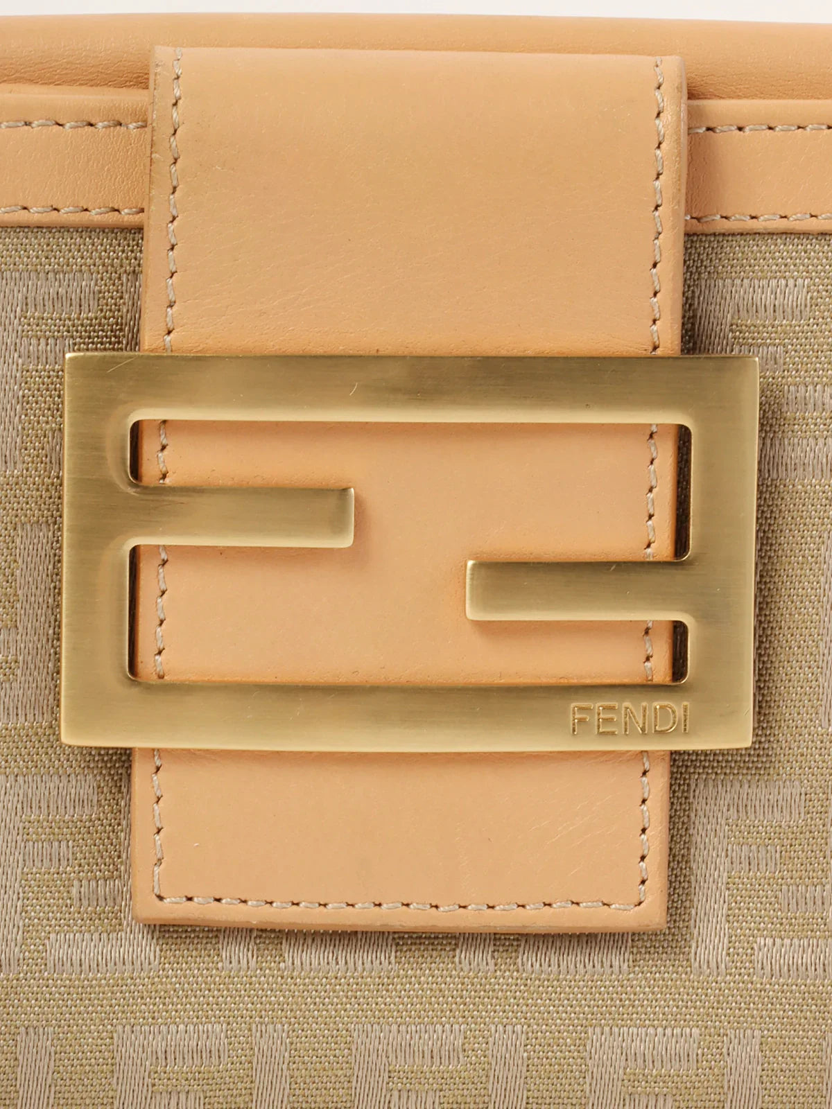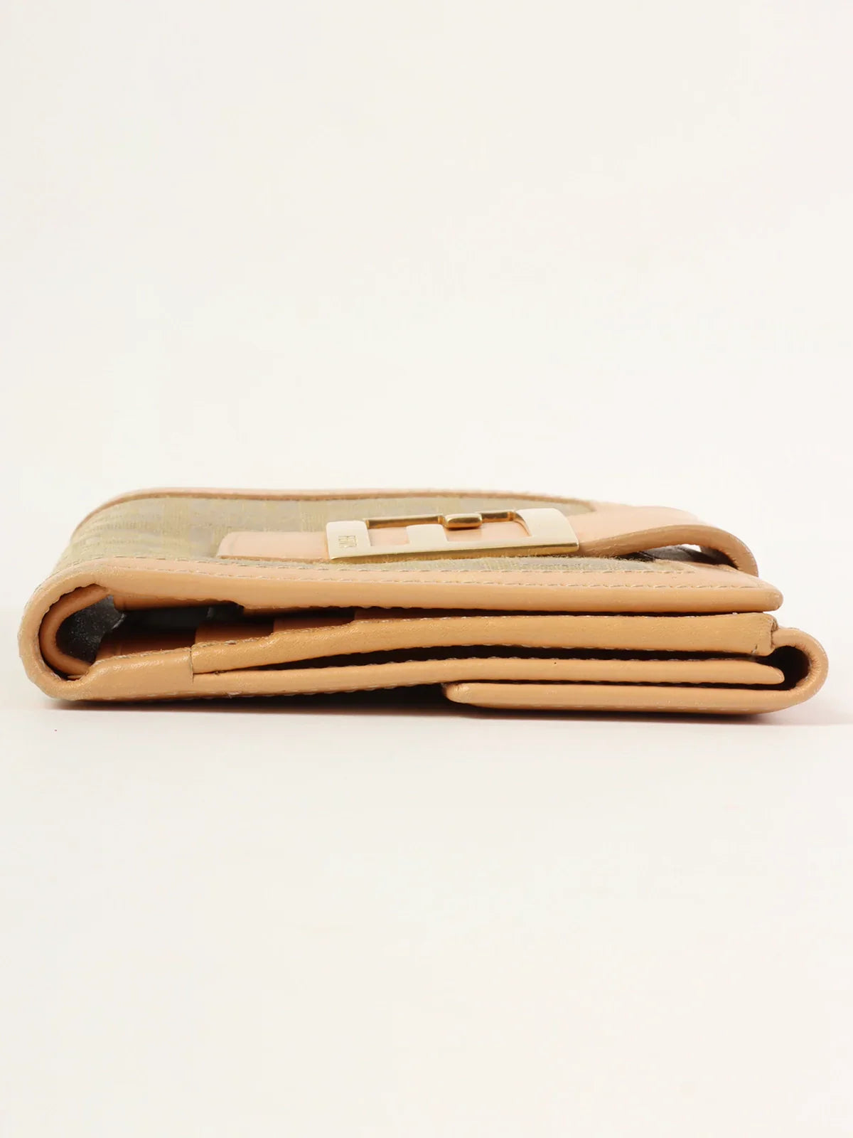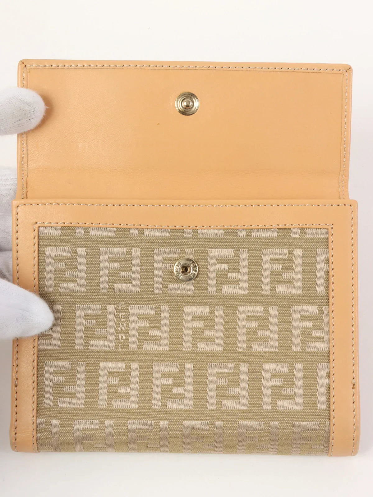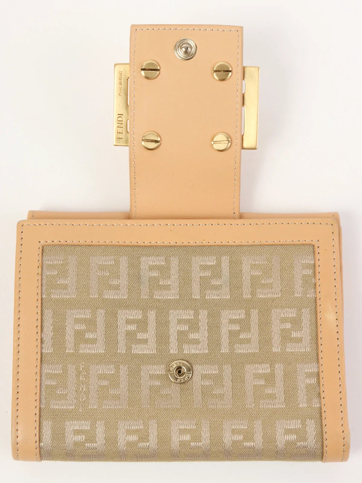 FENDI Zucchino Patten Logo Plate Wallet Beige