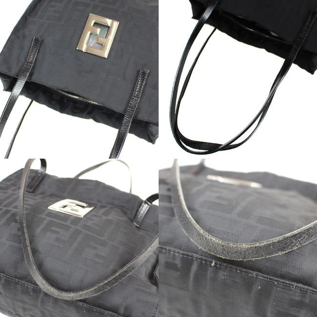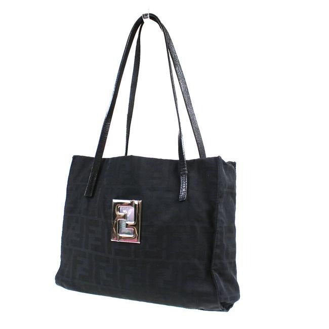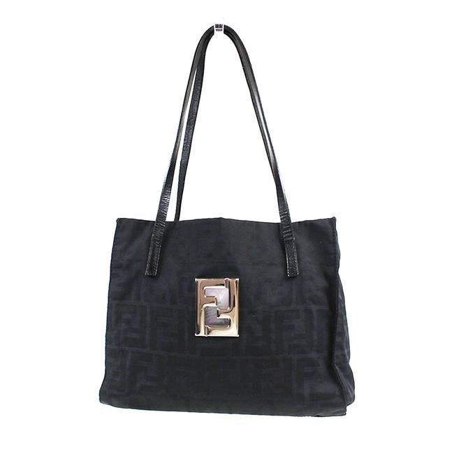 Fendi Zucco Satchelstotesdesigner Purses Black Large F Logo Print Canvas And Black Leather Tote