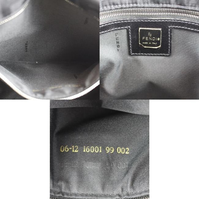 Inside, it is a very clean black fabric. There is one compartment and an interior pocket! It has the true timeless, classic Fendi look! There is a chrome tag that reads Fendi, Made in Italy and authenticity #06121600199002 inside the purse's pocket- see pictures. The bag has minimal wear to the exterior and the lining is very clean! In my opinion, it looks very lightly used!