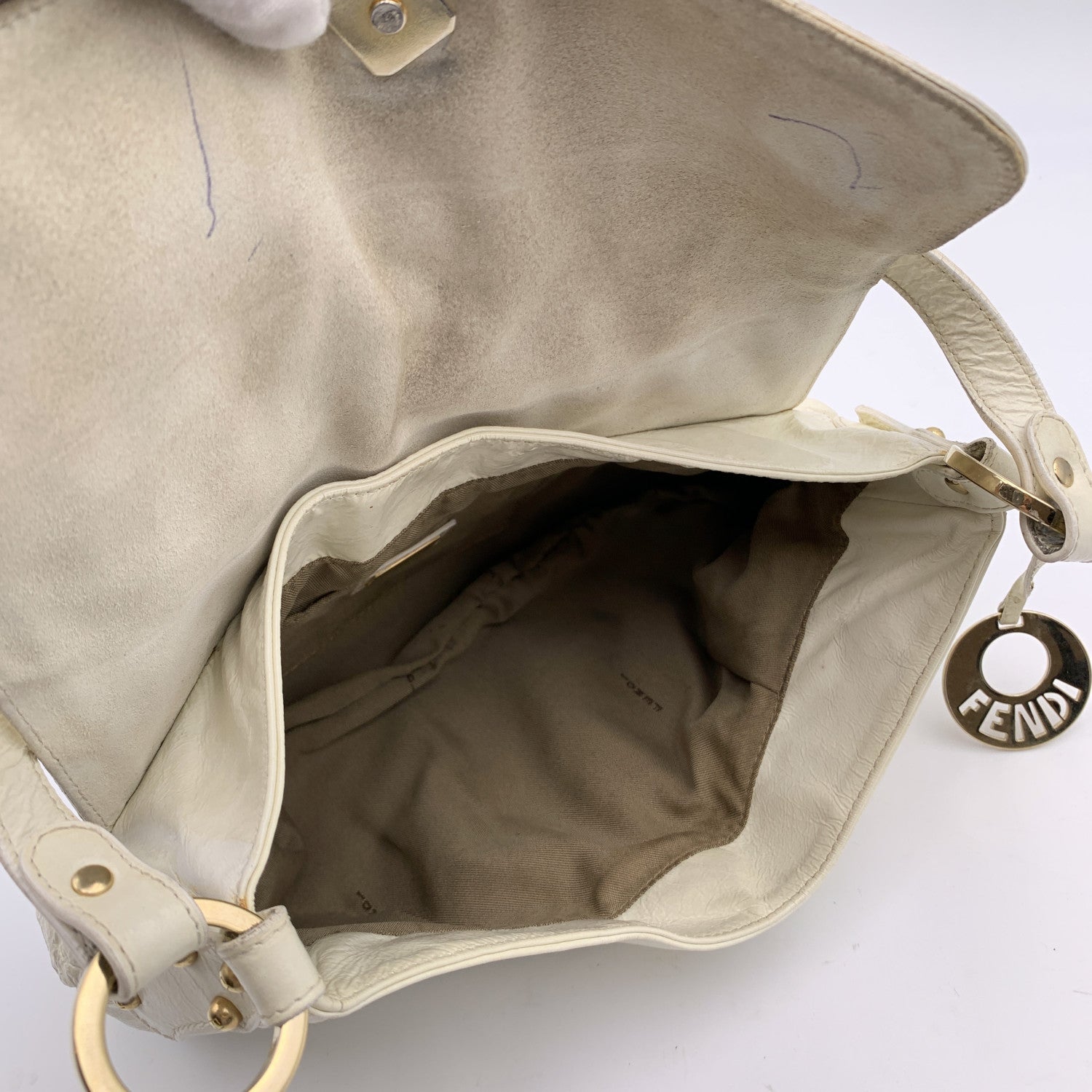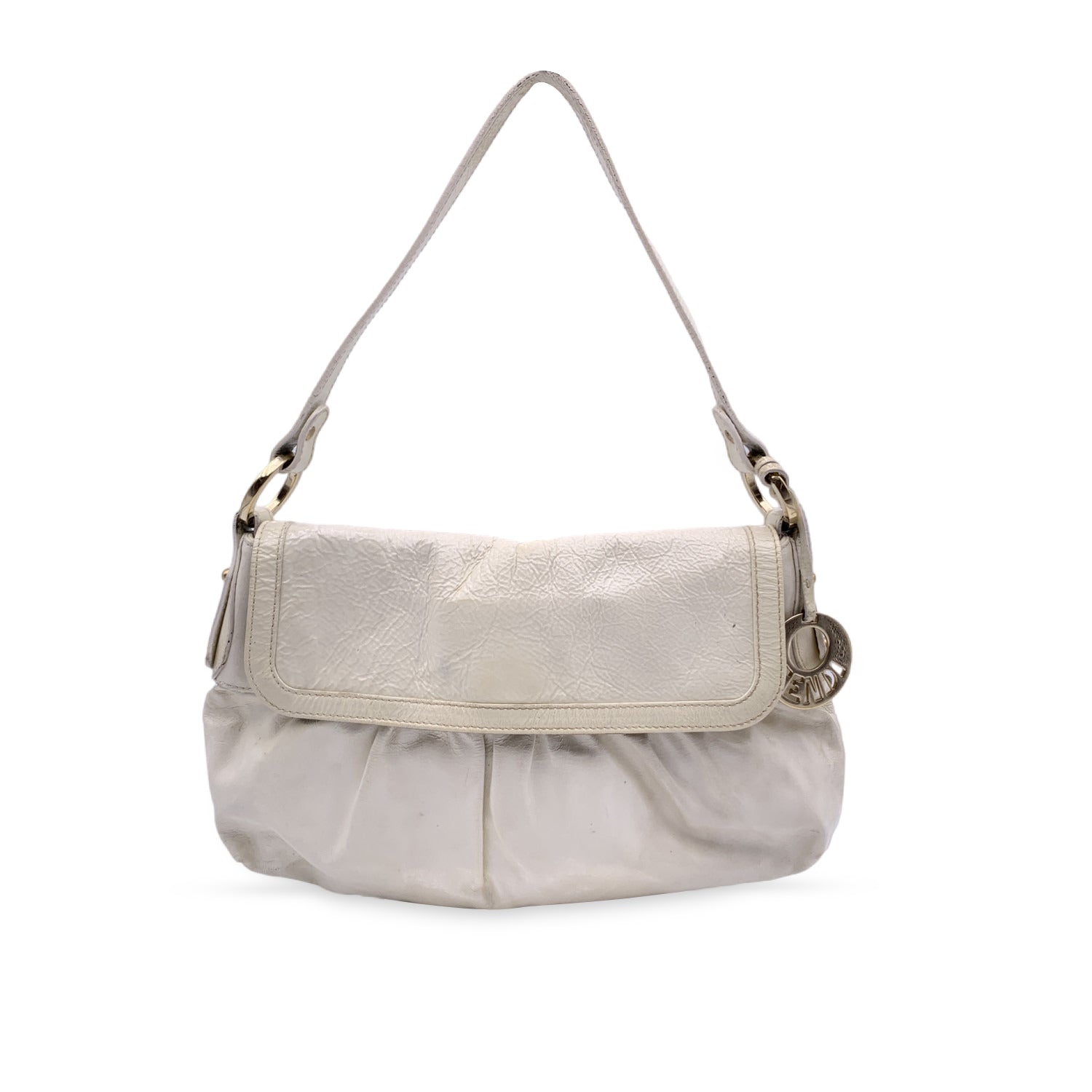 Fendi ' Small Chef' Bag, Crafted In White Patent Leather. Light Gold Metal Hardware. Flap With Magnetic Button Closure On Top. Fabric Lining. 1 Side Open Pocket Inside. 'Fendi - Made In Italy' Tag Inside. ity Hologram Tag And Leather Tag With Serial Number Inside.