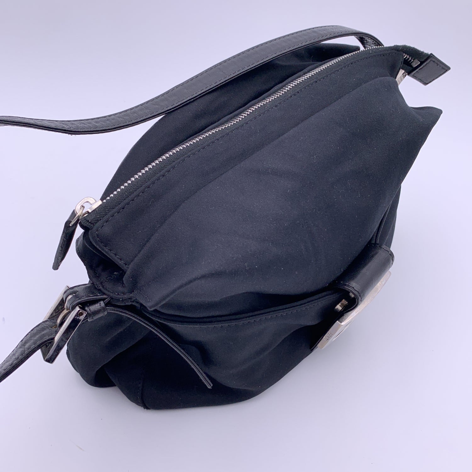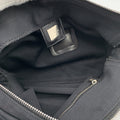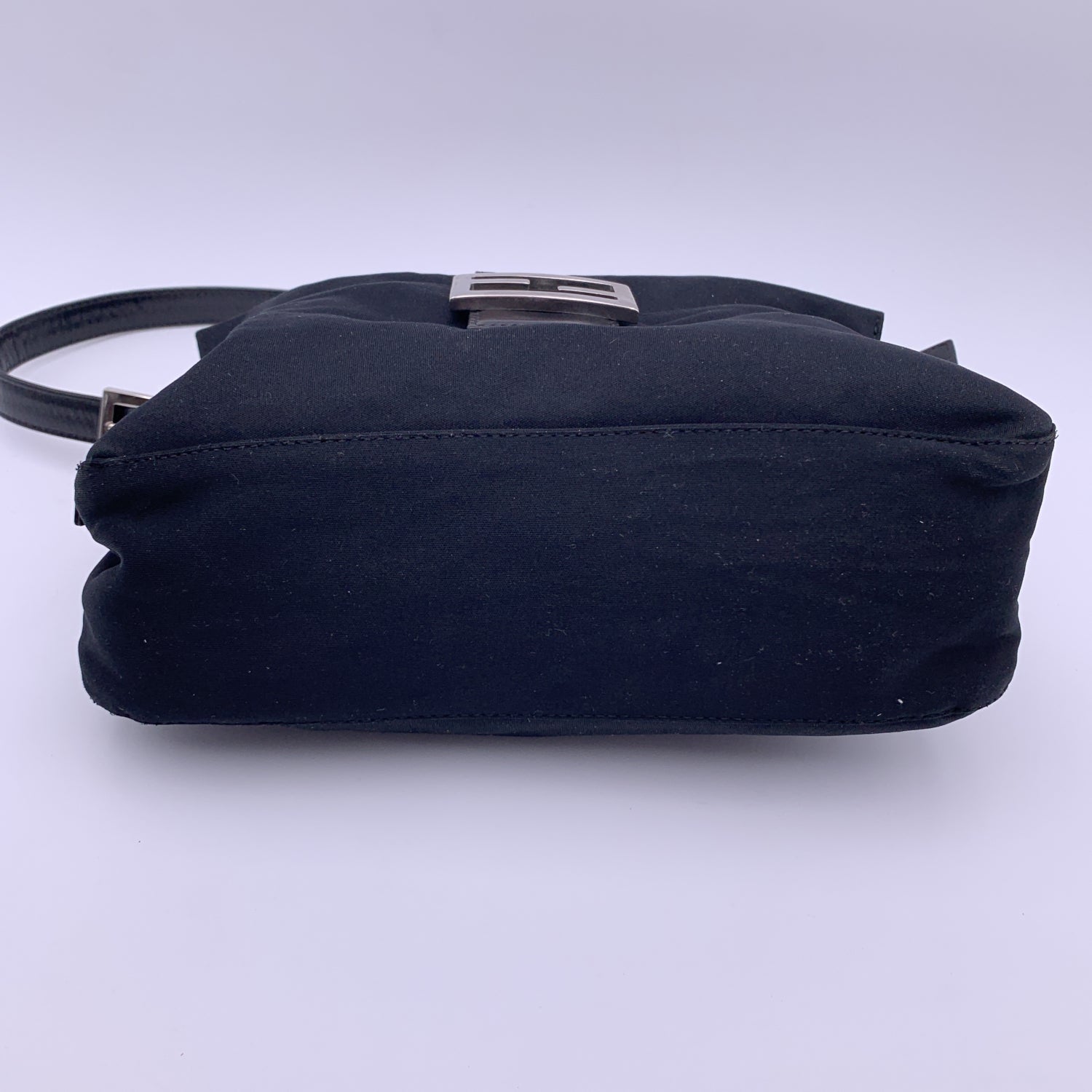 Gorgeous Black Fabric Front Pocket 'Baguette Bag' By Fendi. Front Pocket With Ff Hardware Snap Closure. Upper Zipper Closure. Interior Zipper Pocket. Adjustable Leathr Top Handle. A Deceptively Small Bag, With a Sleek And Simple Design, This Bag Can Be On Carried Under The Arm Like The French Loaf From Which It Takes Its Name. Launched In 1997, The 'Baguette' Instantly Became One Of The Most Coveted Accessories Of The Decade And 15 Years Later It Is Still An Enduring Style Icon That Women The World Over Have Desired And Collected With Passion. The Fendi 'Baguette' Has Been Produced In Over 1000 Versions.