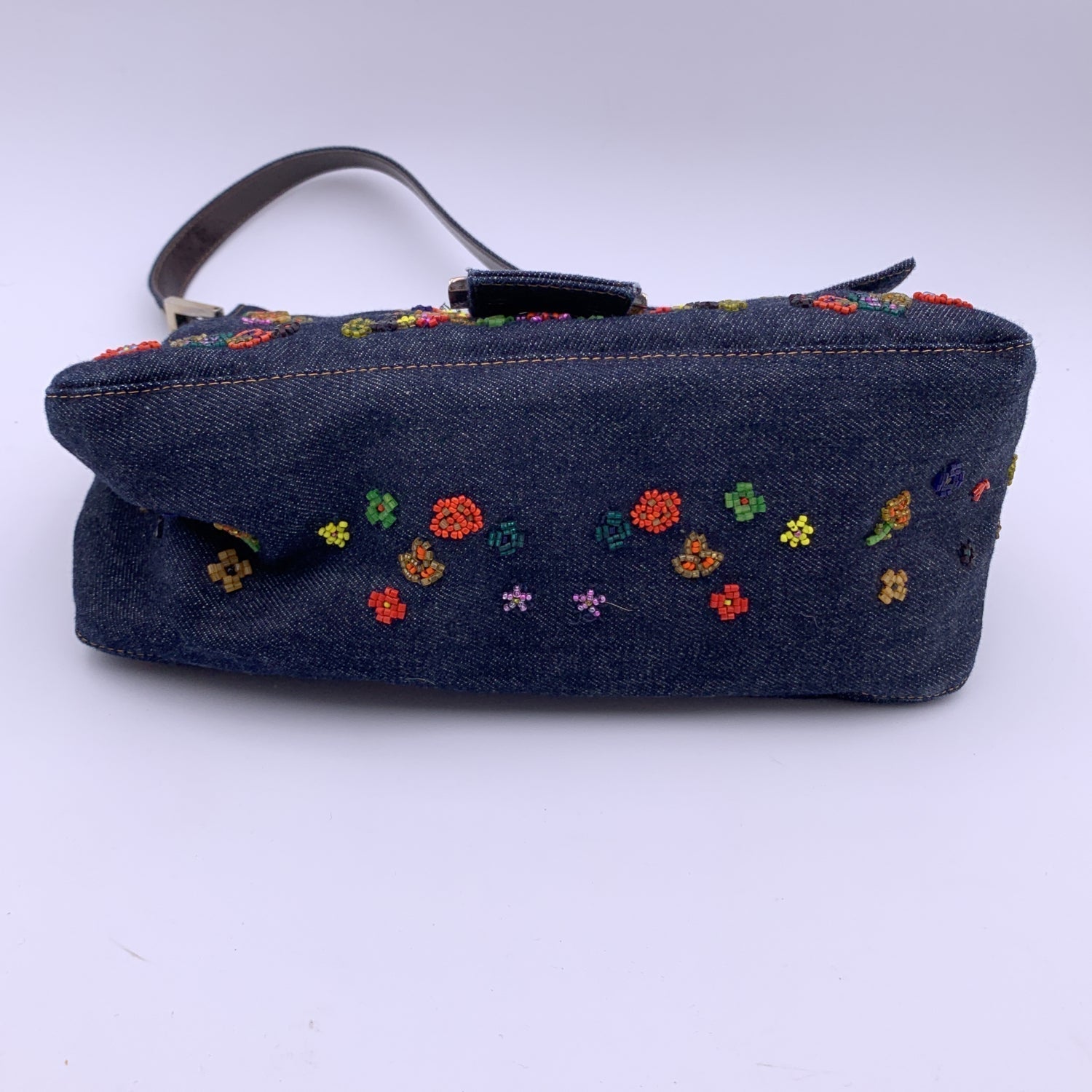 Gorgeous Fendi 'Mama Bag' Shoulder Bag Made From Blue Denim Canvas With Embrodered Beads. Silver Metal Ff - Fendi Logo On The Front. Flap With Magnetic Button Closure. Yellow Satin Lining. 1 Zip Pocket Inside. Adjustable Strap With Buckle On Each Side. 'Fendi - Made In Italy' Tag Inside, ity Serial Number Inside The Internal Pocket.
