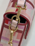 Iconic medium Baguette bag made of pink canvas with a multicolor raised embroidery FF motif, trimmed in tone on tone. Decorated with an FF clasp. Can be carried by hand, or worn either on the shoulder or cross-body thanks to the handle and shoulder strap, both detachable.