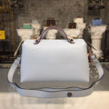 Iconic medium By The Way Boston bag made of light blue, with a zip fasttlming. The bag can be carried by hand with the handles with an embossed, hand-painted FF motif, or worn either on the shoulder or cross-body with the adjustable, detachable shoulder strap. Customisable ptlmdant with FF motif.