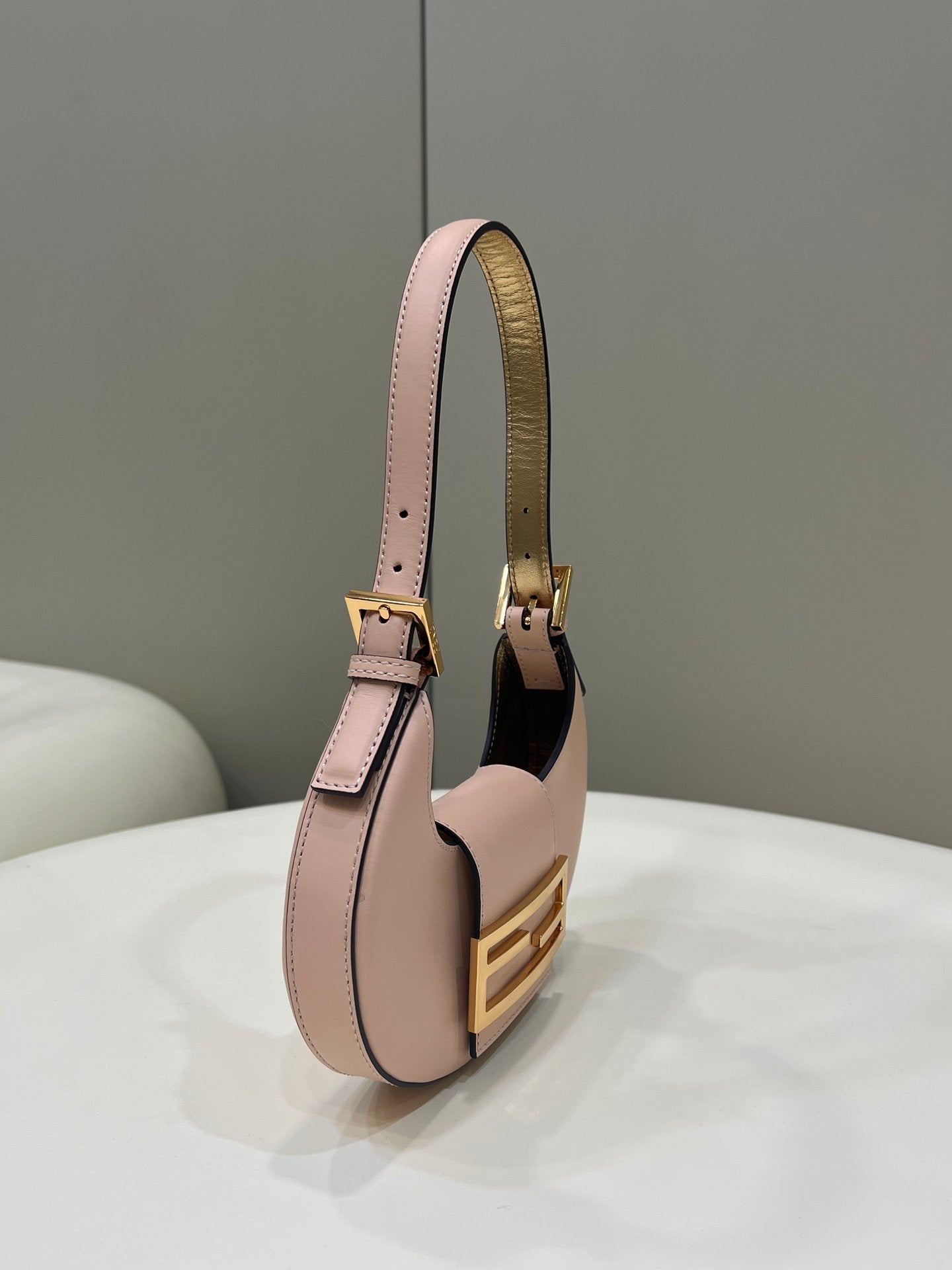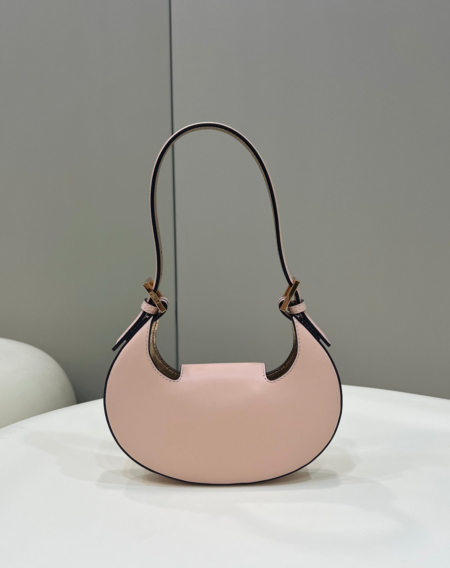 FND Cookie mini hobo bag made of pale pink decorated with an FF clasp. The bag can be carried by hand thanks to the adjustable strap.