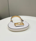 FND Cookie mini hobo bag made of pale white decorated with an FF clasp. The bag can be carried by hand thanks to the adjustable strap.