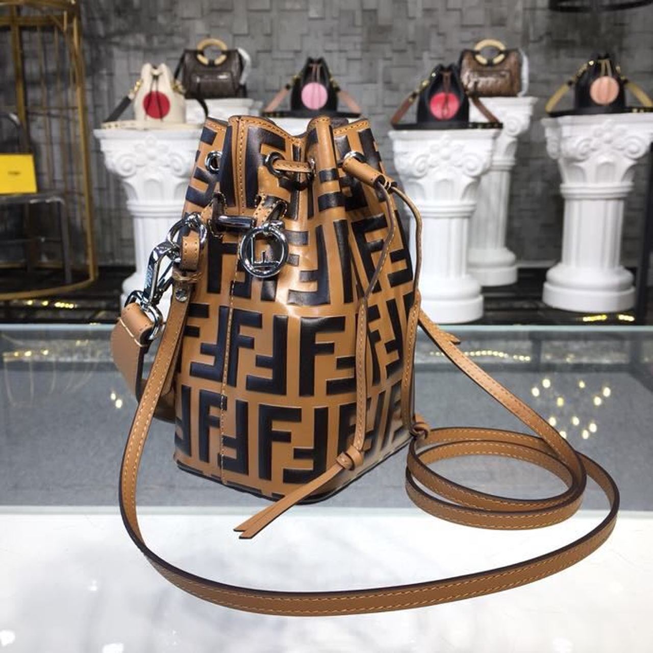 FND Mon Tresor Bucket Bag Brown/Black For Women, Women’s Handbags, Shoulder And Crossbody Bags 7in/18cm FF 8BS010A659F13VK