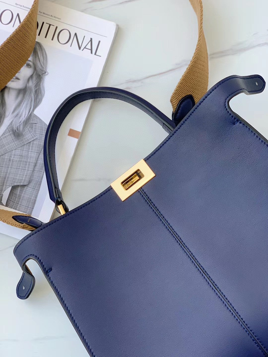 FND Peekaboo X-Lite Tote Medium Dark Blue Bag For Woman 30cm/12in