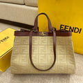 FI Peekaboo X-tote Bag Beige Canvas For Womtlm, Womtlm’s Handbags, Shoulder Bags 16.1in/41cm FF 8BH374