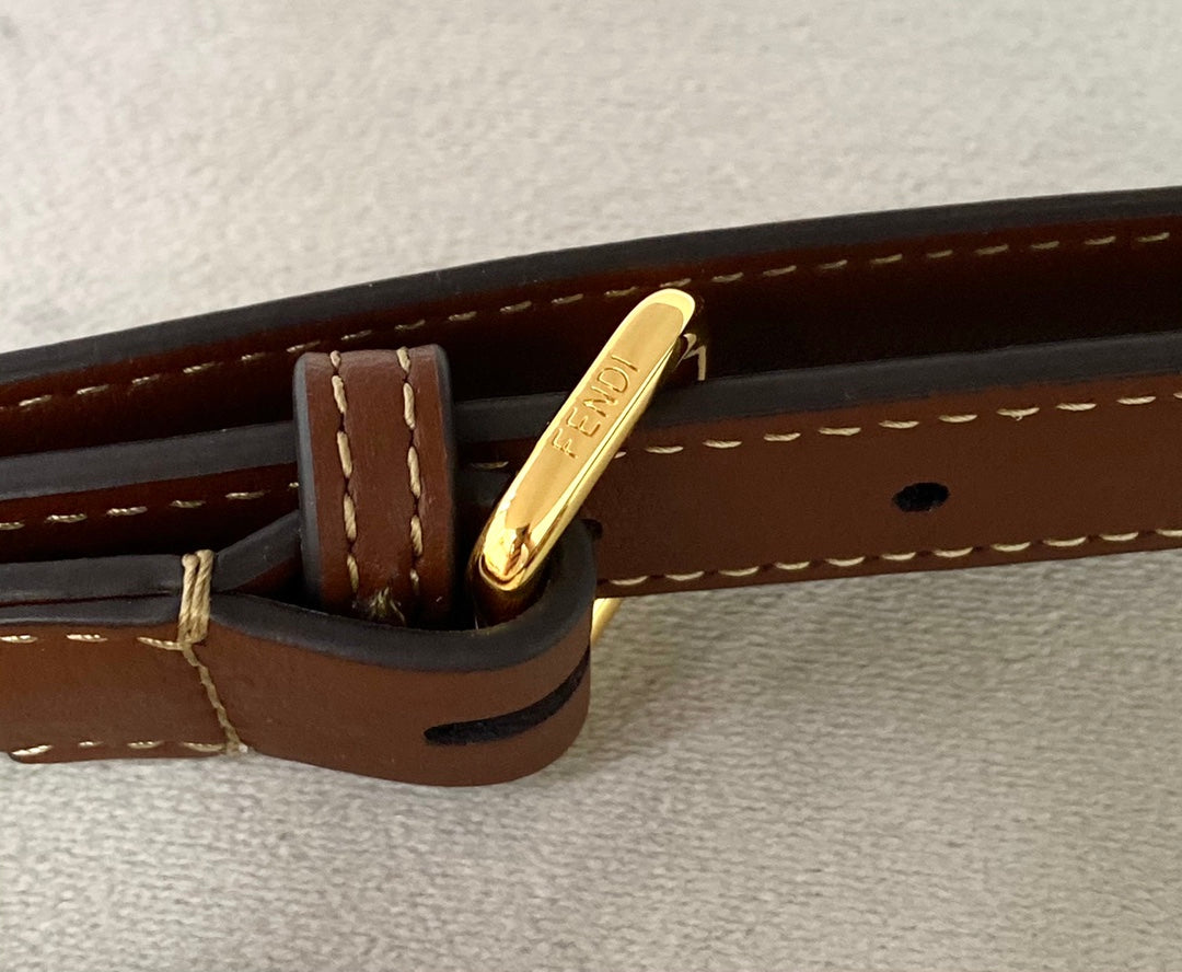 Small Croissant hobo bag made of natural-color wovtlm straw finished with brown details. Decorated with an FF clasp. The bag can be carried by hand or worn on the shoulder thanks to the adjustable shoulder strap.