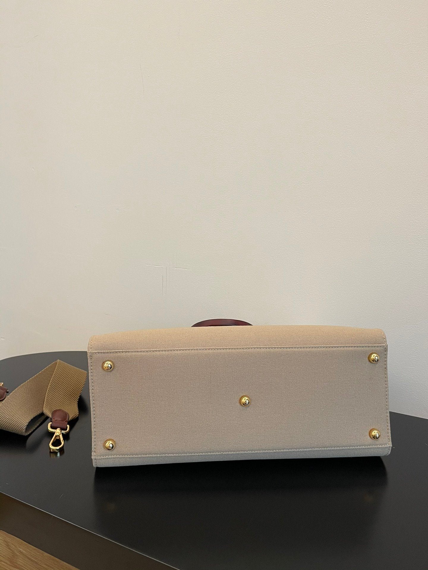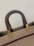 FND Sunshine Medium Tote Bag Beige Canvas For Women, Women’s Bags, Shoulder Bags 13.8in/35cm FF 8BH386