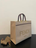 FND Sunshine Medium Tote Bag Beige Canvas For Womtlm, Womtlm’s Bags, Shoulder Bags 13.8in/35cm FF 8BH386