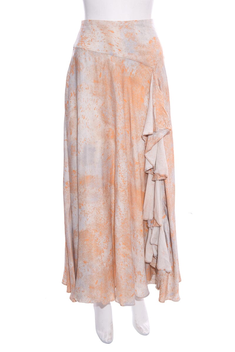 Free People Peach and Grey Maxi Skirt with Ruffle Detail. This item is new with tags.