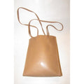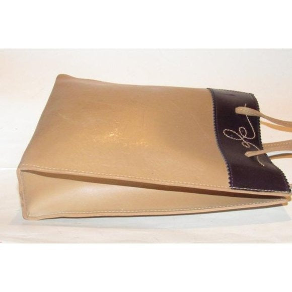 Early Furla, petite, tote bag made of camel leather with a brown leather accent at the top with an open top, two longer handles, and an equestrian feel!