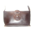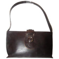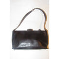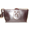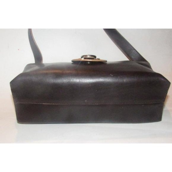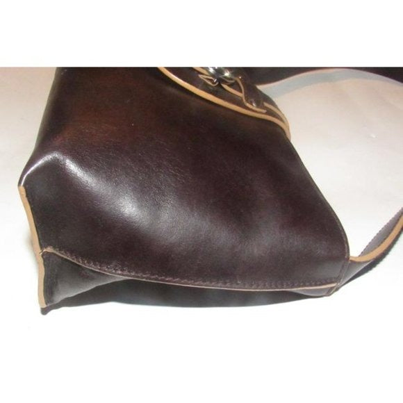 Furla Dark Brown Leather Shoulder Satchel with Camel Piping & Chrome Accents