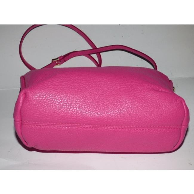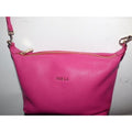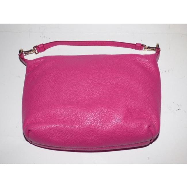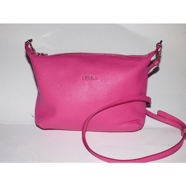 This bright pink pebbled leather bag with two optional straps is made by Furla. It is brand new with tags. It has a removable top handle with a 4" drop as well as a removable, adjustable, cross body, shoulder strap with a 22"-24" drop. It has a top zip closure, one inside open pocket, and three card slots built into the lining! It is fully lined and includes the original dust bag. It is a great, bubble gum pink colored leather.