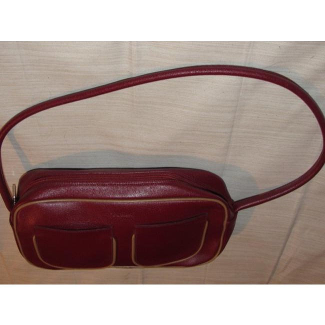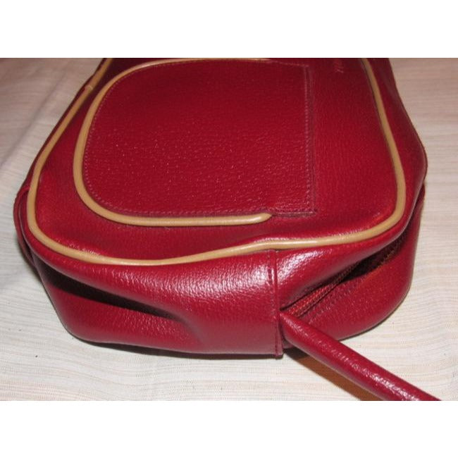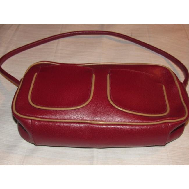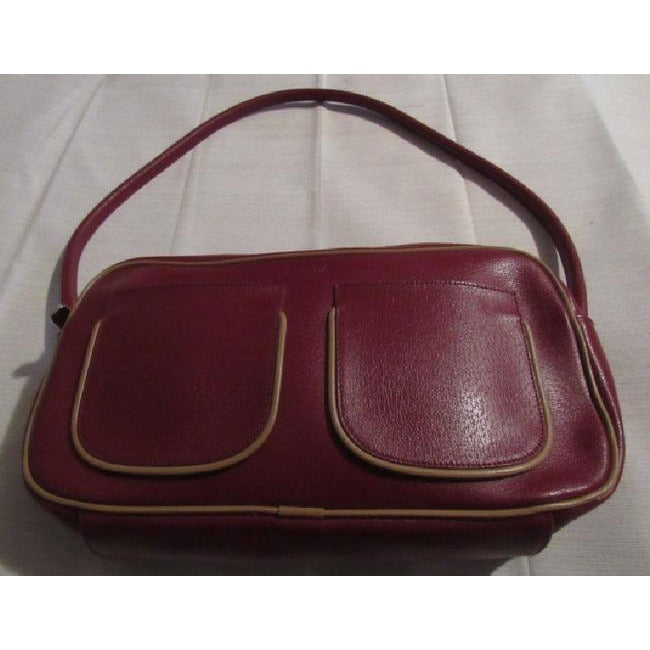 For sale is a Furla, dark red with tan leather piping, single strap, satchel style shoulder purse with two front pockets! It creates a perfect look for you with a lot of style!