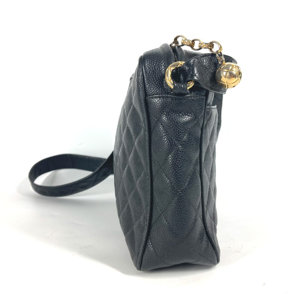 CHANEL Shoulder Bag Caviar skin black Vintage CC COCO Mark quilting matelasse Women Used
