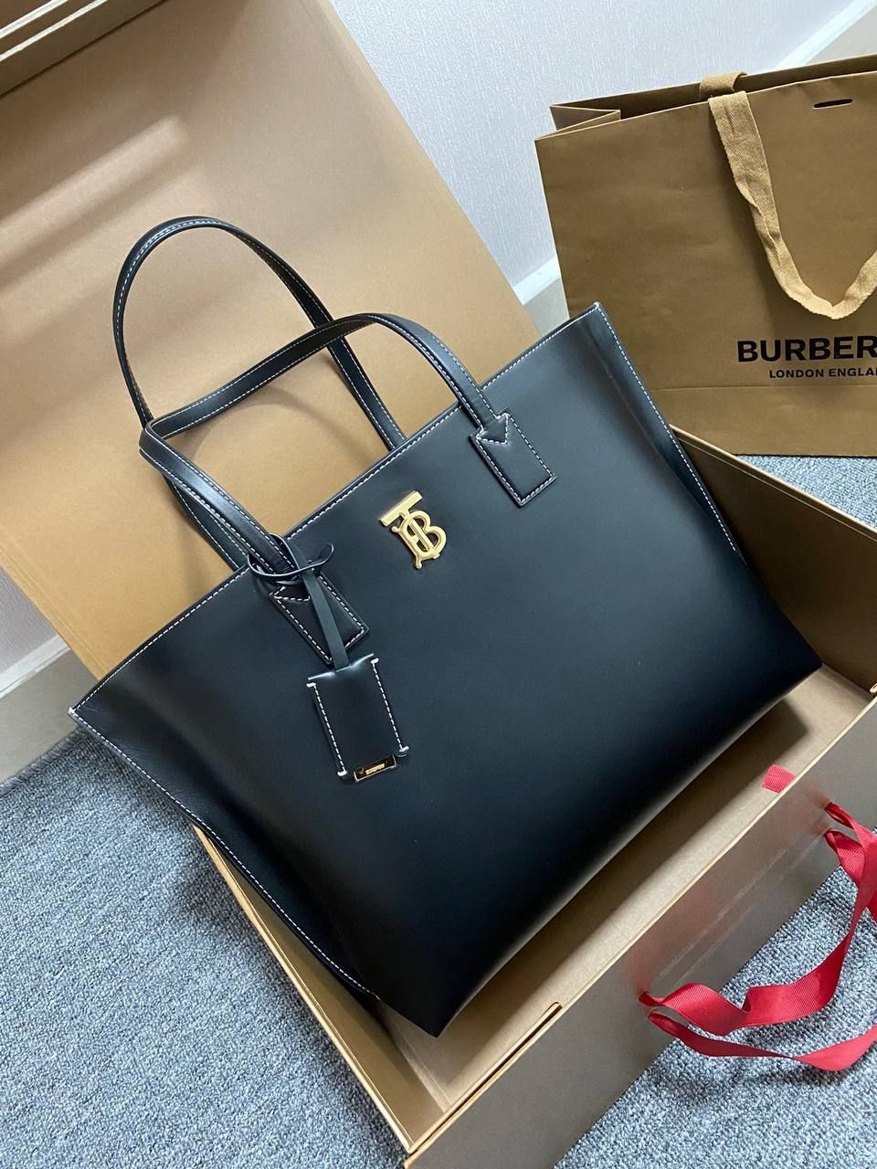 Burberry TB Smooth Leather Tote Bag - Luxury Women Bag (Black)