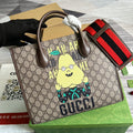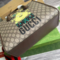 Reflecting the essence of the runway show, a ‘Apple GG’ print decorates this square-shaped tote bag, echoing the same joyful and playful narrative seen running through the collection. A Brown and Yellow trim adds a pop of color against the signature GG Supreme canvas.